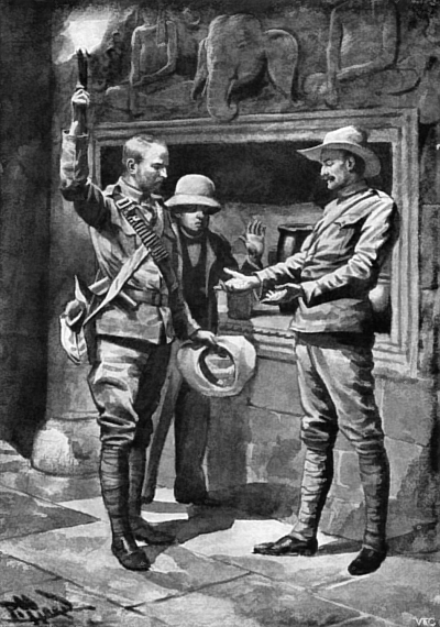 At last he rose, and having returned his glass to the bar, donned his topee, left the hotel, and went for a stroll. It was but a short distance to the harbour, and he presently found himself strolling along the several miles of what I have already described as the most wonderful shipping in the world. To Mr. Hayle the scene was too familiar to call for comment. He had seen it on many occasions, and under a variety of auspices. He had witnessed it as a deck-hand and as a saloon passenger; as a steerage passenger, and in the humble capacity of a stowaway. Now he was regarding it as a gentleman of leisure, who smoked a cigar that had been paid for, and round whose waist was a belt with gold in it. Knowing the spot where the British India boats from Calcutta usually lie, he made his way to it, and inquired for a certain vessel. She had not yet arrived, he was informed, and no one seemed to know when she might be expected. At last, tired of his occupation, he returned to his hotel, and in due course sat down to supper. He smoked another cigar in the verandah afterwards, and was on the point of retiring for the night, when two men suddenly made their appearance before him, and accosted him by name. He immediately sprang to his feet with a cry of welcome.
