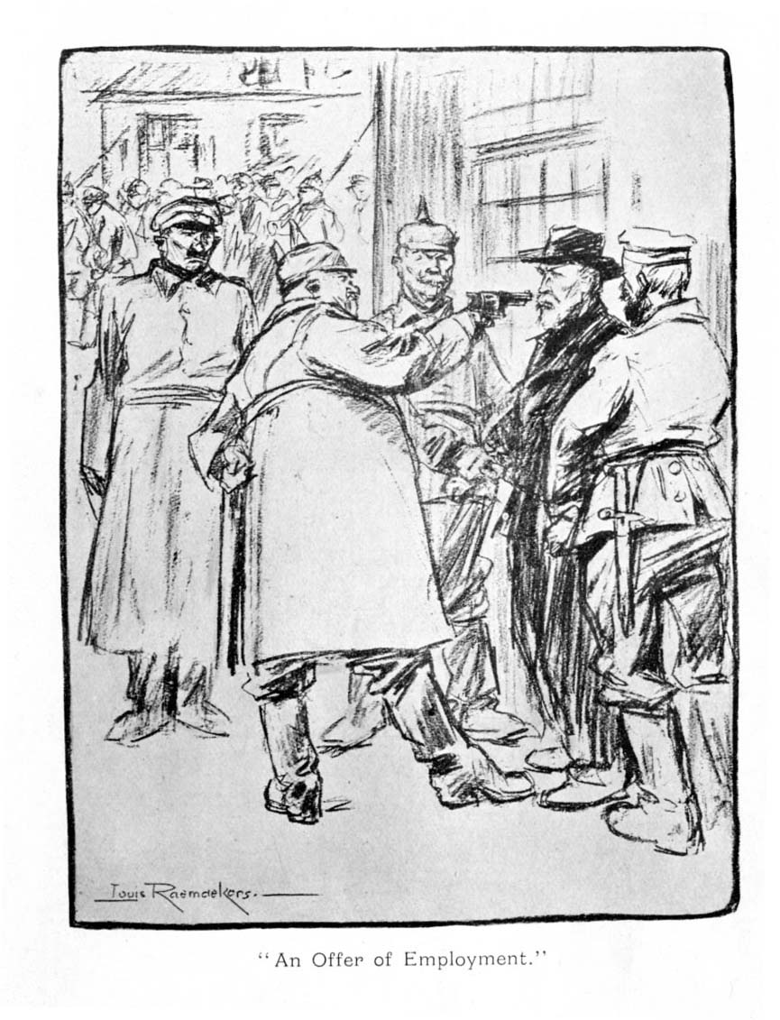 Such narrow-minded tyranny always defeats its own objects. Burgomaster Max's proud answer to General von Luttwitz's "advice" to remove the flags became the password of the patriots. Every Bruxellois henceforth "waited for the hour of reparation." A great number of women went to prison rather than remove the emblems of Belgium which they wore. Stories passed from lip to lip. Their accuracy I would not guarantee, but they belong to the epic of the war and are true to the spirit of the people. A young lady, who was jeered at by a German officer because she was wearing King Albert's portrait, is said to have answered his "Lackland" with, "I would rather have a King who has lost his country than an Emperor who has lost his honour." Another lady, sitting in a tram-car opposite a German officer, was ordered by him to remove her tricolour rosette. She refused to do so, and, as he threatened her, defied him to do it himself. The Boche seized the rosette and pulled .. and pulled .. and pulled. The lady had concealed twenty yards of ribbon in her corsage.