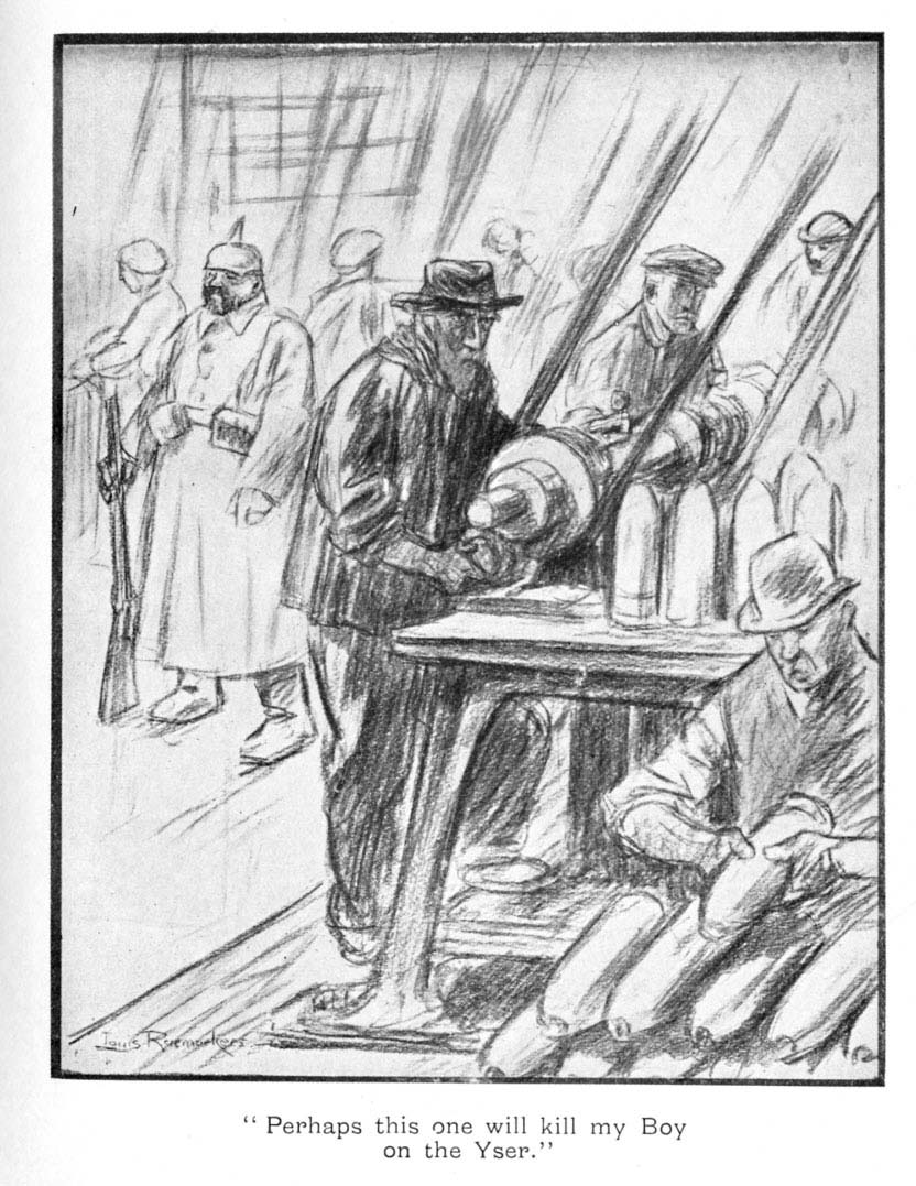 It was scarcely necessary to underline some passages of this report. However bad may be the impression it causes, it would be twenty-six times worse if we had the leisure to follow step by step the progress of German economic policy in Belgium. It is evident that the German administration, in spite of its former declarations, is resolved to ruin Belgian industry and to throw out of work the greatest number of men possible. All raw material must go to Germany in order to be worked there. As it has become evident that the Belgian workers will not submit to war work so long as they remain in their surroundings, they must be torn away from their country and compelled to follow the materials and machines over the frontier. Labour has become an inanimated object necessary to the prosecution of the German war. It is as indispensable to Germany as cotton, nickel and copper. It will be treated as such. If the men resist, they will be crushed. If the soul of Belgium will not yield to persuasion, it will be taken away from her, like her cattle, her corn, her iron and her steel. And so Belgium will become a weapon in Germany's hands, a weapon which will strike at Belgium. And the only thought of the deported worker turning a shell in a German factory will be, as is suggested by Louis Raemaekers' cartoon, "Perhaps this one will kill my own son?"