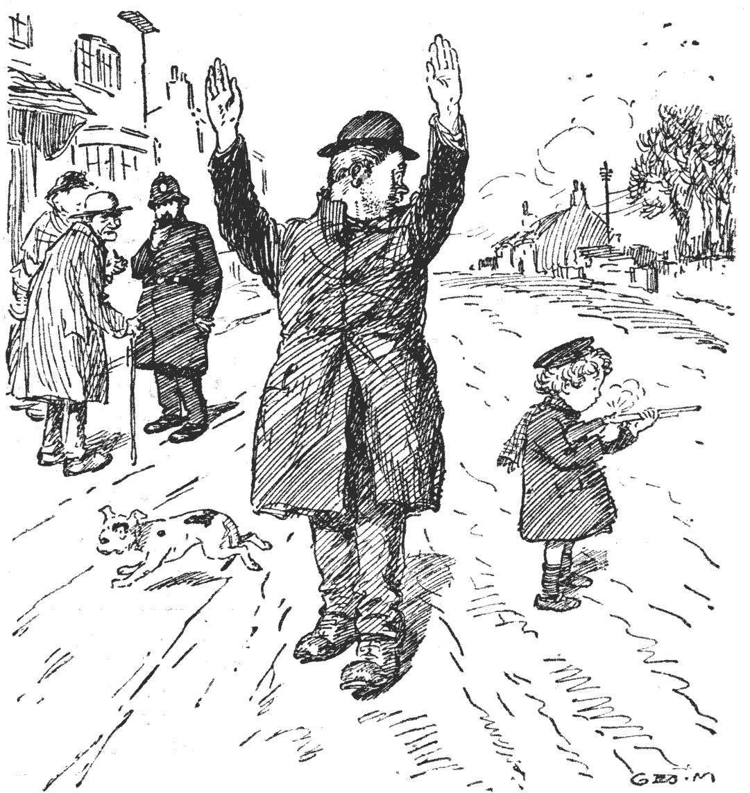 "A gamble with death in the Strand—seeing that the stake is precisely the same—should be quite as enthralling as a hairbreadth 'scape on the plains of Texas, even though the gambler wears a top-hat instead of sheepskin trousers."—Manchester Guardian.