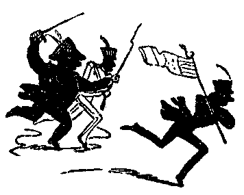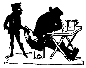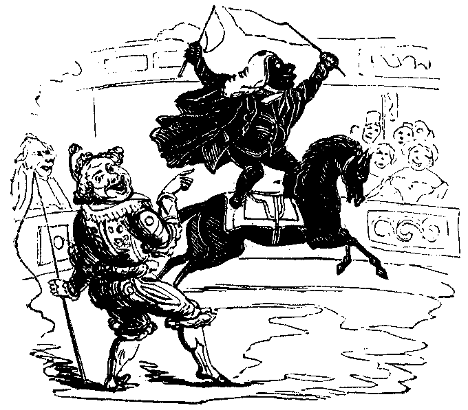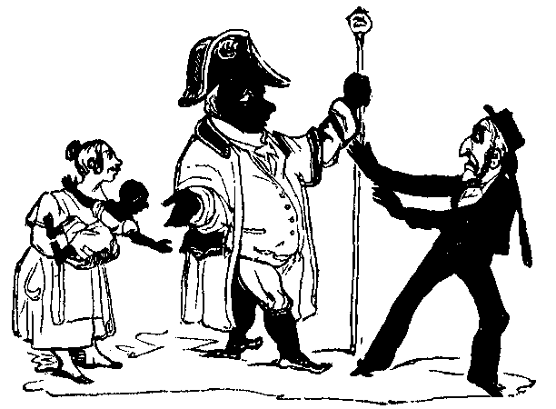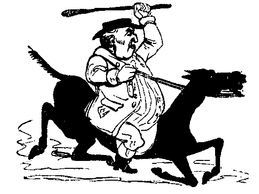 10 o’clock.—Heard that a vagabond was singing “Jim Crow” on Tower-hill—proceeded with a large body of the civic authorities to arrest him, but after an arduous chase of half-an-hour we unfortunately lost him in Houndsditch. Suppressed two illegal apple-stalls in the Minories, and took up a couple of young black-legs, whom I detected playing at chuck-farthing on Saffron-hill. Issued a proclamation against mad dogs, cautioning all well-disposed persons to avoid their society.