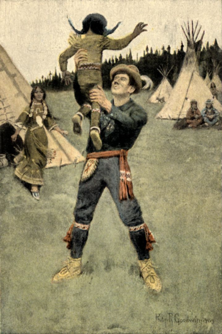 That one cry was enough, however. Rescue darted from the nearest wigwam. A flying figure covered the little distance in a dozen graceful leaps, snatched the child from the young man's hands and stood, one foot advanced, breast heaving, a palpitating, wild thing, like a symbol of defiance.
