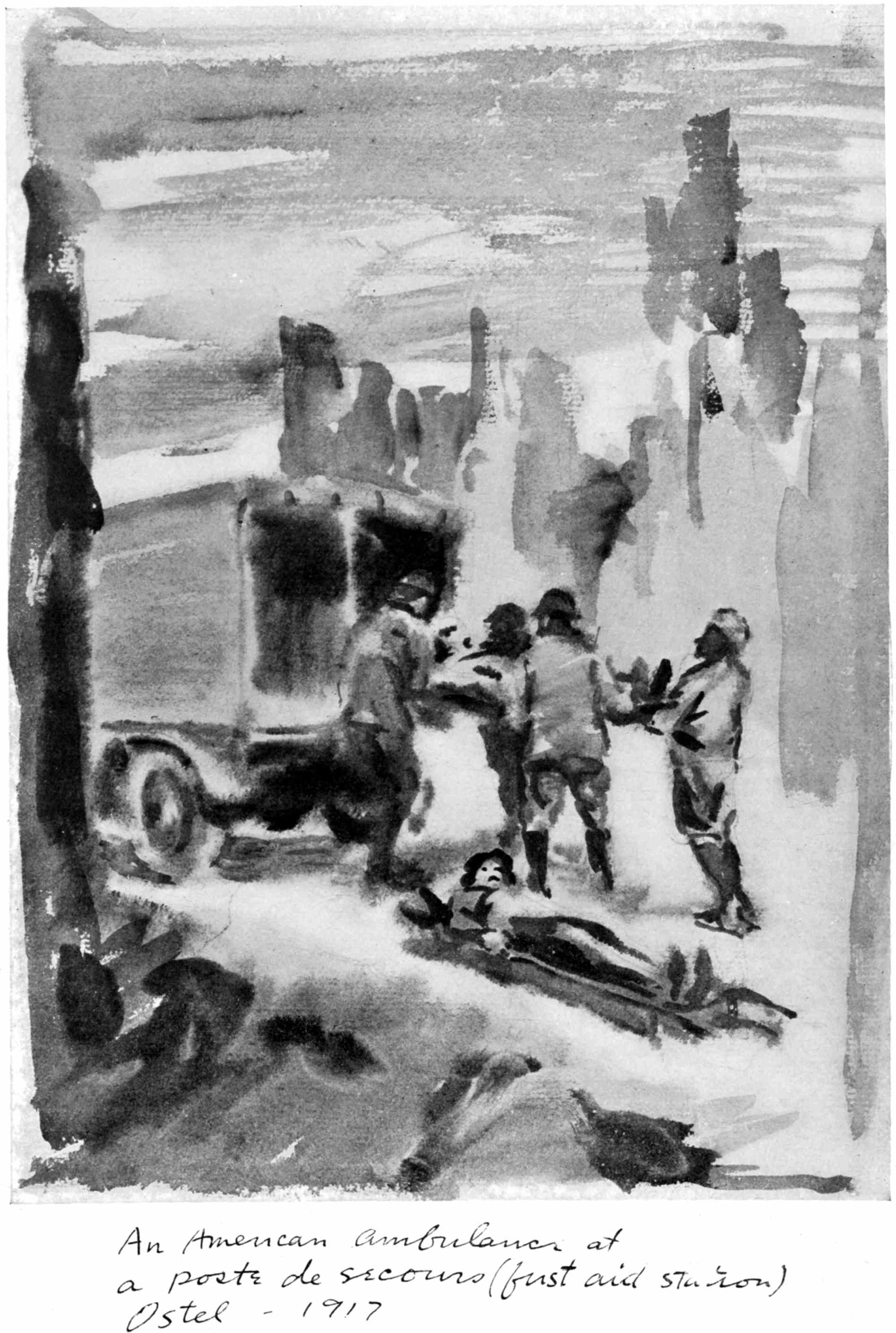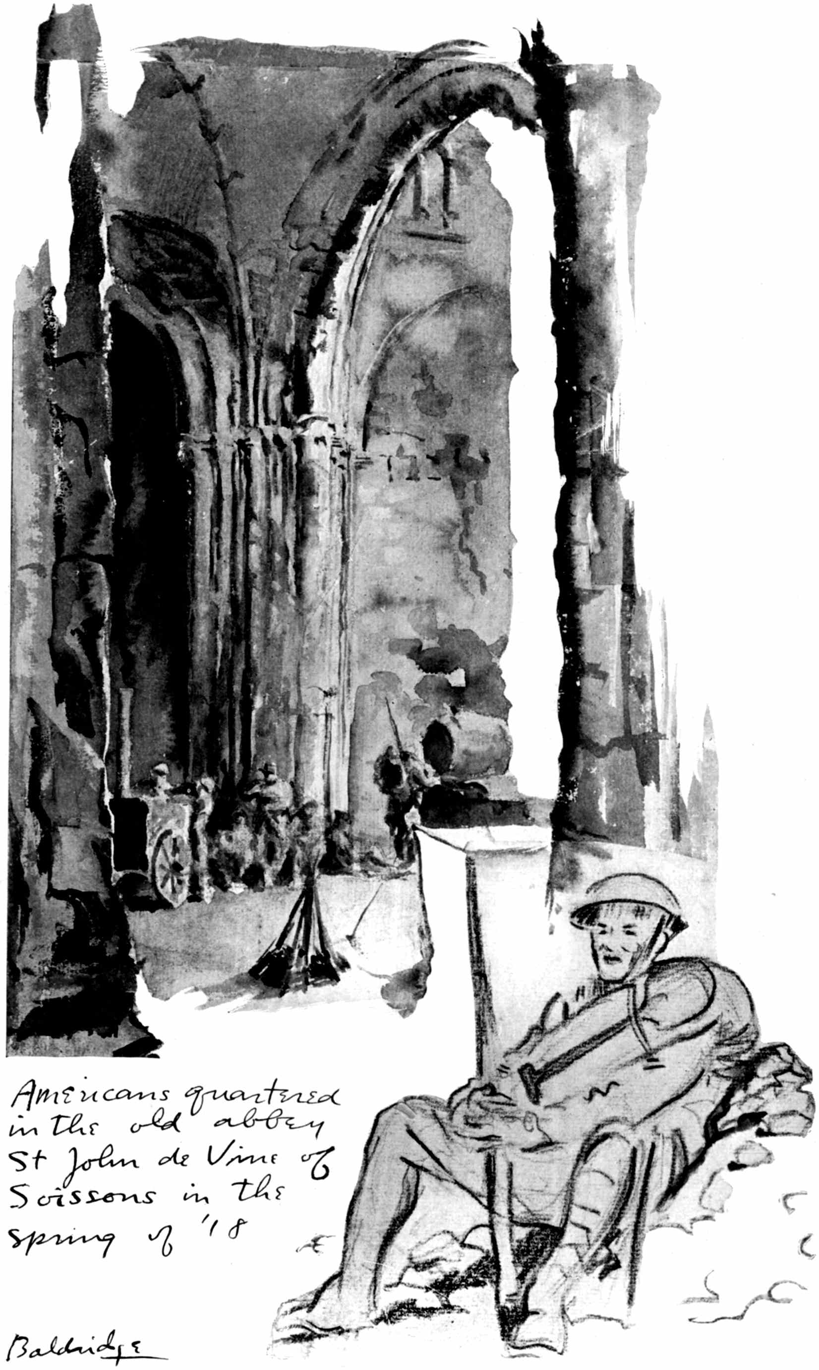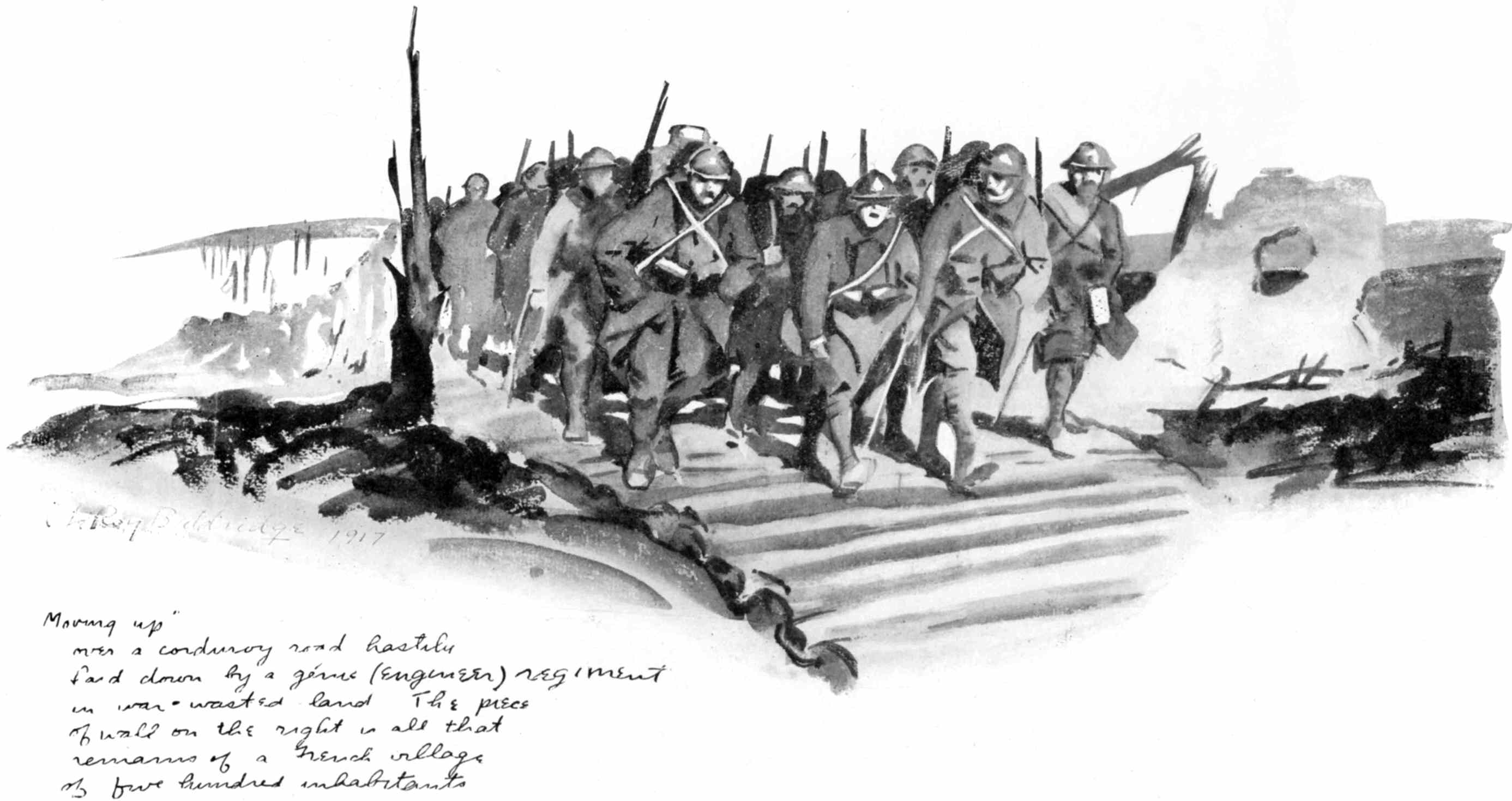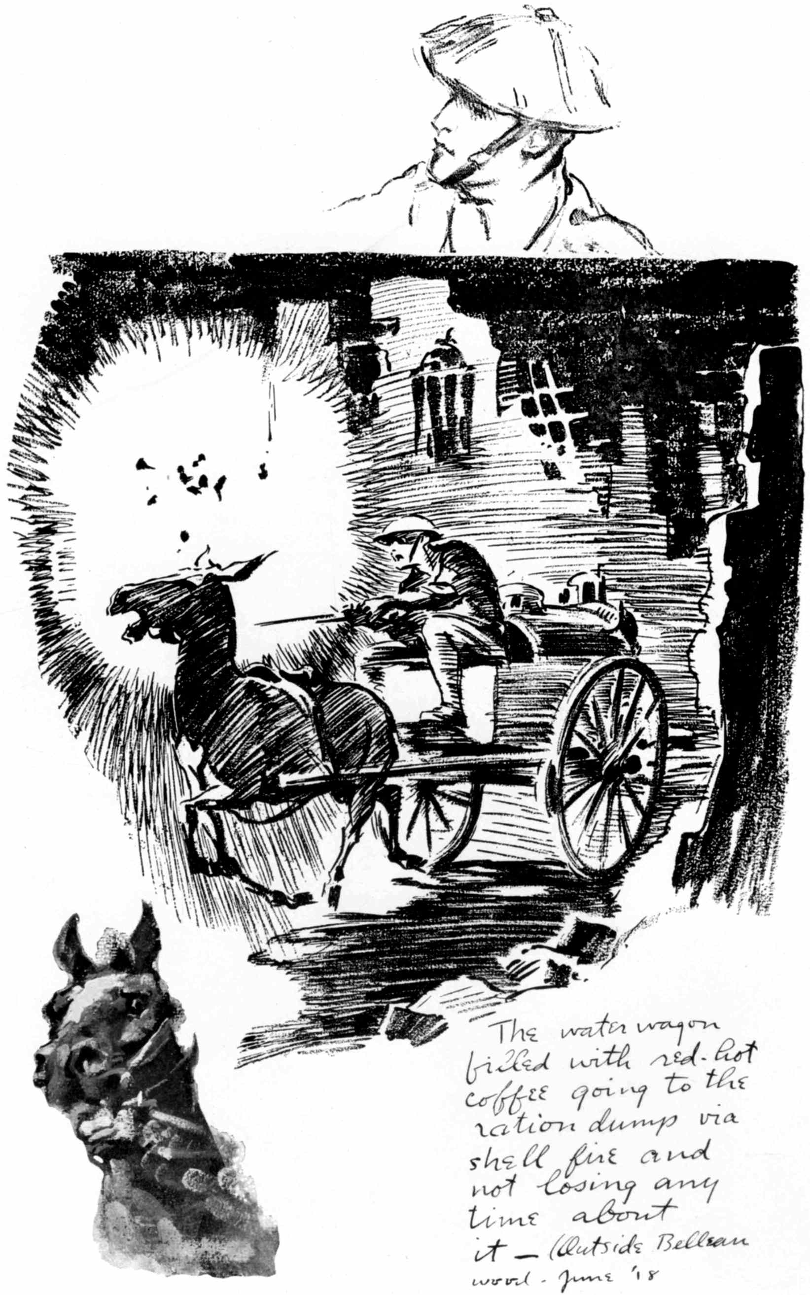 These Sketches were made during a year's service as a camion driver with the French army in the Chemin-des-Dames sector and a year's service with the A.E.F. as an infantry private on special duty with "The Stars and Stripes," the official A.E.F. newspaper. Most of them were drawn at odd minutes during the French push of 1917 near Fort Malmaison, at loading parks and along the roadside while on truck convoy, and while on special permission to draw and paint with the French army given me by the Grand Quartier Gènèral during the time I was stationed at Soissons. The rest were drawn on American fronts from the Argonne to Belgium as my duties took me from one offensive to another.