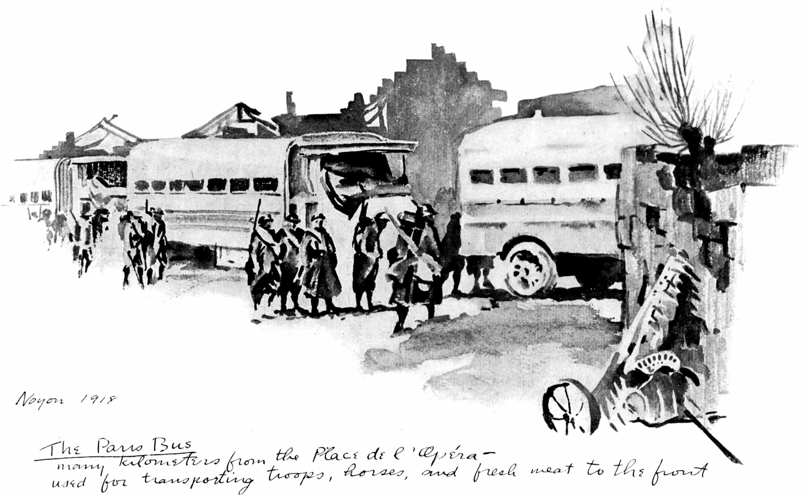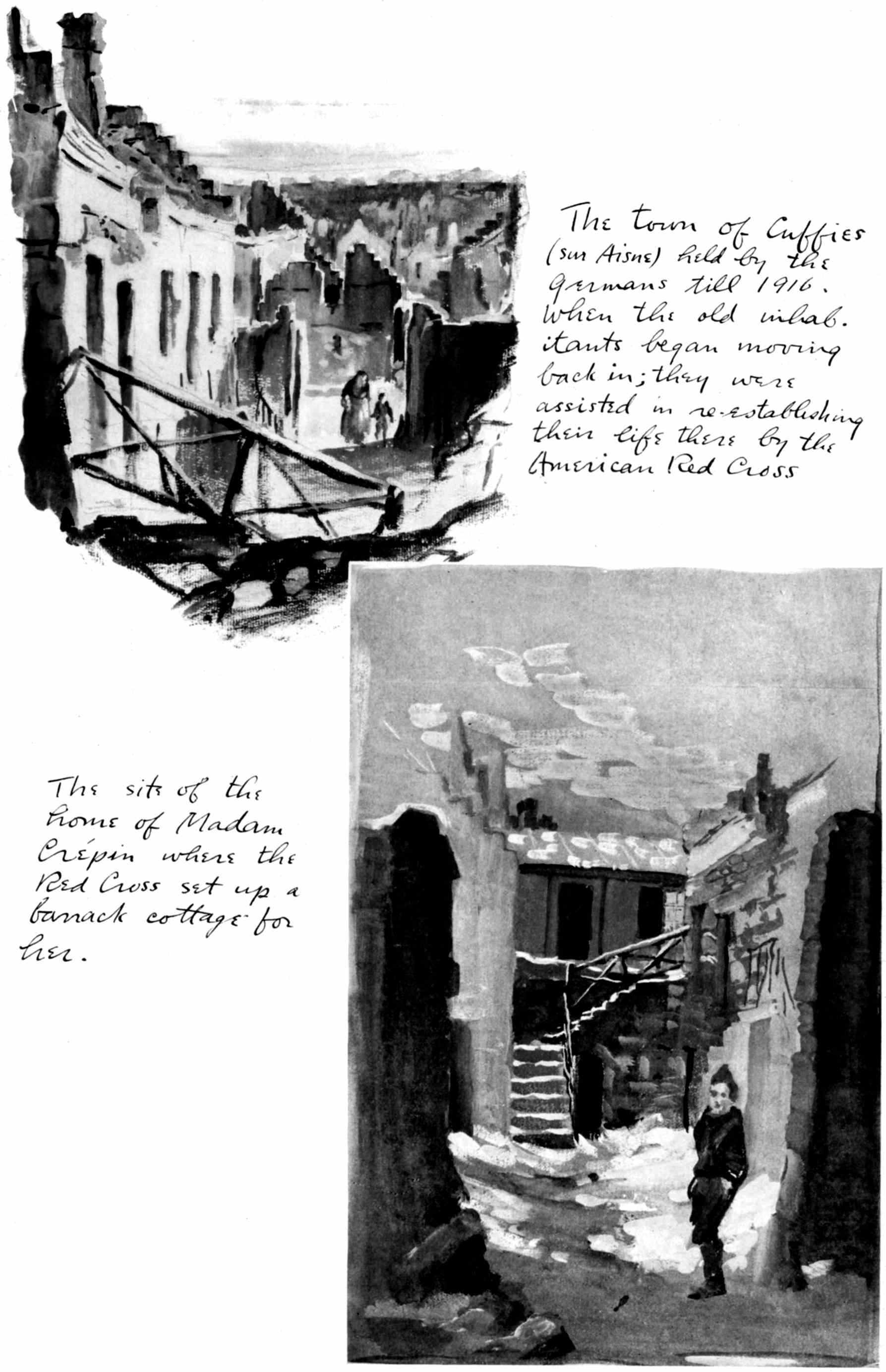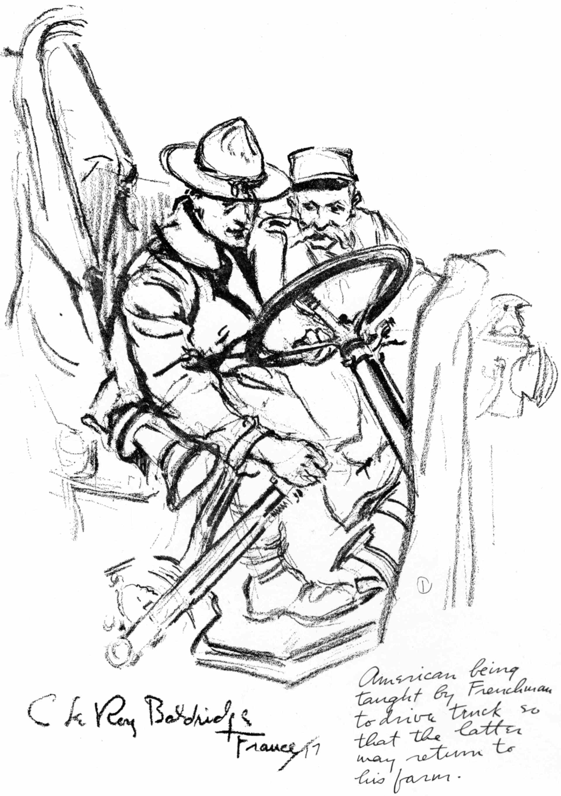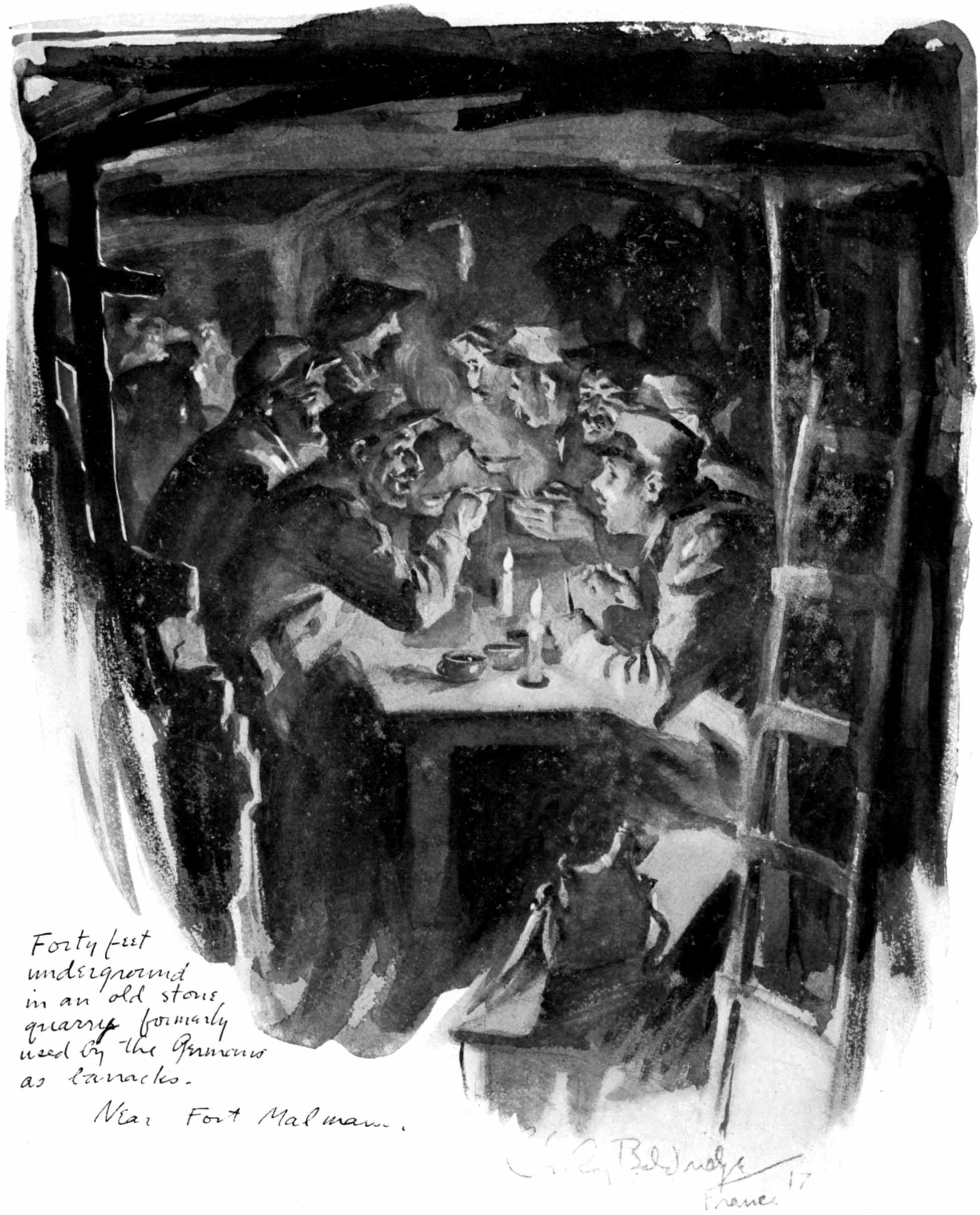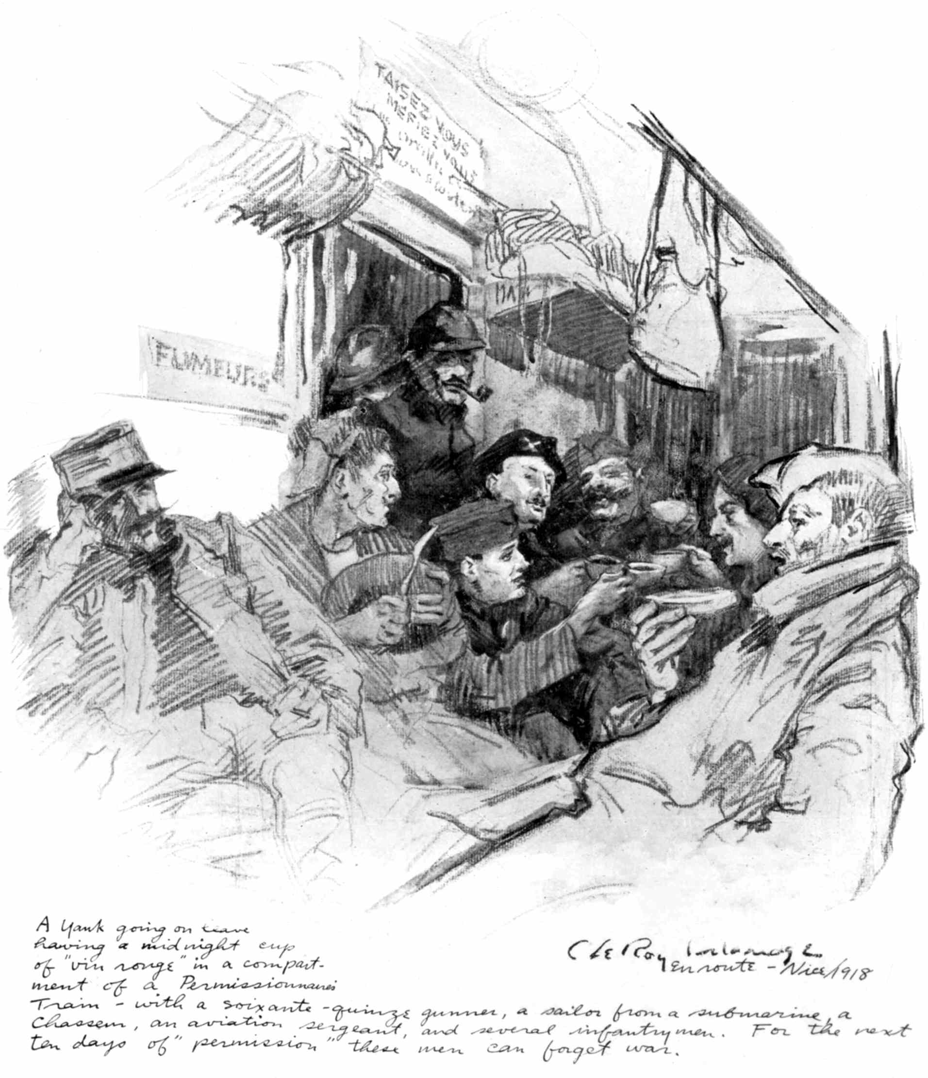 These Sketches were made during a year's service as a camion driver with the French army in the Chemin-des-Dames sector and a year's service with the A.E.F. as an infantry private on special duty with "The Stars and Stripes," the official A.E.F. newspaper. Most of them were drawn at odd minutes during the French push of 1917 near Fort Malmaison, at loading parks and along the roadside while on truck convoy, and while on special permission to draw and paint with the French army given me by the Grand Quartier Gènèral during the time I was stationed at Soissons. The rest were drawn on American fronts from the Argonne to Belgium as my duties took me from one offensive to another.