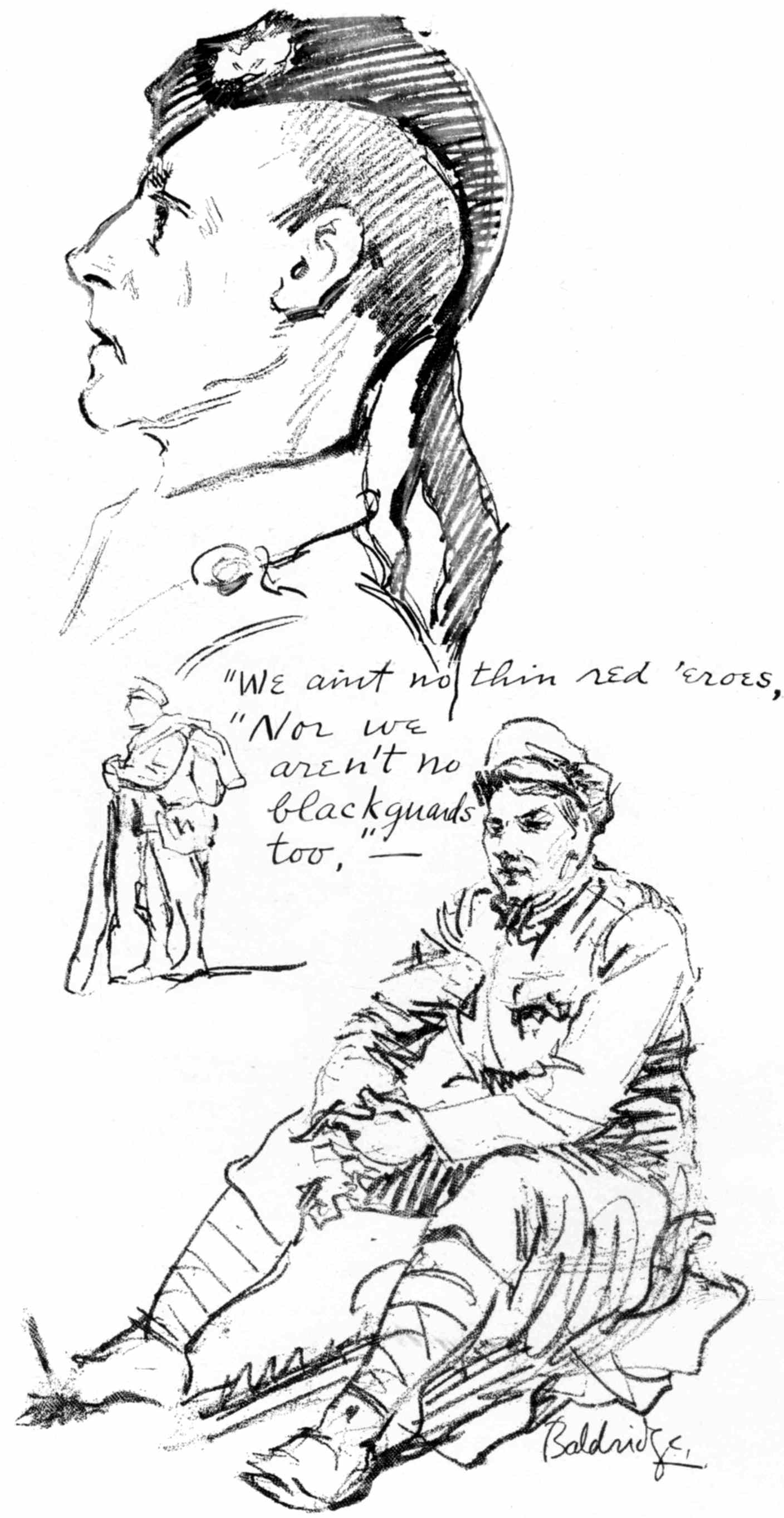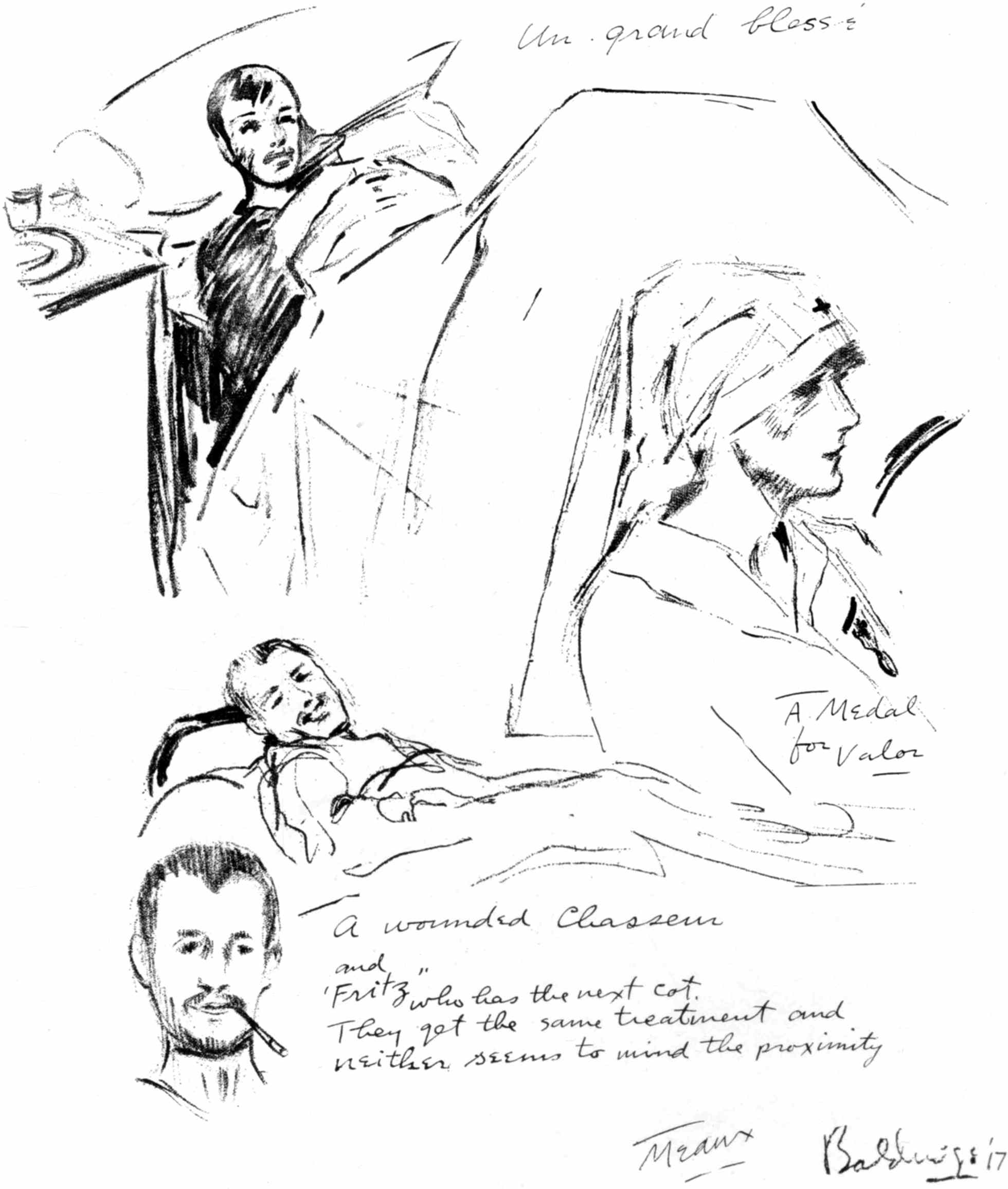It has been a keen regret to me that my artistic skill has been so unequal to these opportunites. The sketches do not sufficiently show war for the stupid horror I know it to be.
