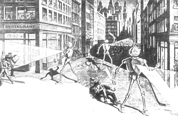 From Somewhere Out of Time Come a Swarm of Robots Who Inflict on New York the Awful Vengeance of the Diabolical Cripple Tugh. (Beginning a Four-Part Novel.)