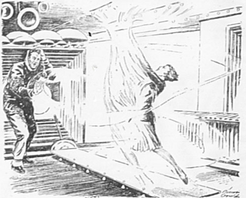 Milton grasped his hand, as did Lanier, and then the physicist shot a glance at the square clock on the wall. "Well, there's little enough time left us," he said, "for we've hardly an hour before midnight, and at midnight we must be in that transmitting chamber for Nelson to send us flashing out!"