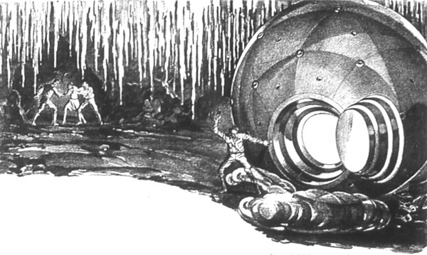 "We are not going in either space-ship or projectile," said Milton calmly. And then as he saw his friend's bewilderment he rose and led the way to a door at the room's end, the other three following him into the room beyond.