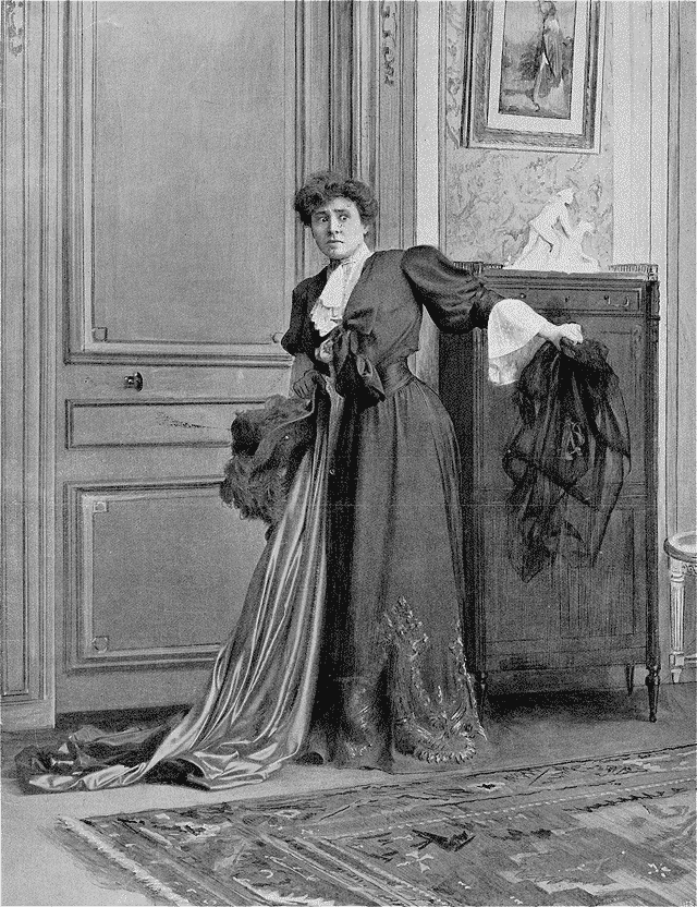 Le prince Jean de Sylvanie, qu'elle aime, vient d'être assassiné--du moins on le lui a fait croire--dans la pièce voisine. Siméon Keff, le meurtrier supposé, la menace de la porter lui-même au dehors si elle refuse de s'éloigner... Thérèse.--Oh!... vos mains ne me toucheront pas... Ne me touchez pas!... Je m'en irai... Je m'en vais... (D'une main, elle se saisit de son manteau tombé sur le canapé; de l'autre main, elle reprend son chapeau sur une table.)