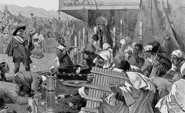 Je revois le cortège (il y a bien une dizaine d'hivers!); cela se passait près d'Odessa. Une nuit claire; à perte de vue la plaine blanche, et des étoiles plein le ciel. En tête du cortège, une étoile aussi, mais énorme, celle-là, en papier doré, et portée au bout d'une perche par un enfant. De petits cierges, disposés autour de l'étoile en papier doré, la font briller sur l'obscurité du chemin. D'autres enfants suivent, portant: l'un une sorte de niche en bois où s'évoquent les scènes de la Passion, que représentent de naïves marionnettes; l'autre un saucisson; un autre un plat, un autre un sac... Ils chantent, en marchant, des cantiques. Aux maisonnettes, des lumières brillent, et voici que, sur le passage du cortège enfantin, une fenêtre s'est ouverte. Le Bonhomme Noël de France, c'est, là-bas, «Koliada»; et c'est au nom de Koliada que les bambins font leur quête. Elle est fructueuse partout et les plus pauvres ménages ont quelque chose à donner à Koliada: un saucisson, des gâteaux au fromage, quelques kopecks. Les maîtres du logis, en donnant leur offrande à Koliada, ont crié: «Que le Seigneur vous bénisse, petits enfants!» Puis la fenêtre s'est refermée, et tandis que s'assemble, pour le repas du réveillon, la famille autour de la nappe propre où le père a posé le manche d'une charrue (simulacre d'une nouvelle offrande à Koliada, moyennant quoi on espère que les récoltes seront préservées des rongeurs), la petite troupe remercie en chantant et continue son chemin, gaiement, vers d'autres portes: