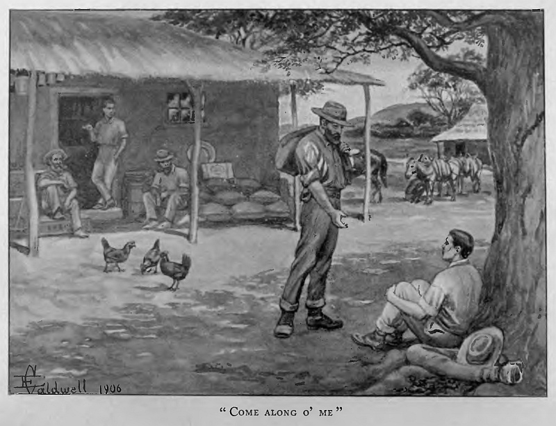 To me it was an absurd and tiresome affectation to show interest in any other topic, and when, during that evening, conversation strayed to other subjects, it seemed waste of time and priceless opportunity. Bob responded good-naturedly to many crude attempts to head them back to the entrancing theme, but the professional interest in rates, loads, rivers, roads, disease, drought, and ‘fly,’ was strong in the older transport-riders, as it should have been, but, for the time at least, was not, in me. If diplomacy failed, however, luck was not all out; for when all the pet subjects of the road had been thrashed out, and it was about time to turn in, a stray question brought the reward of patience.