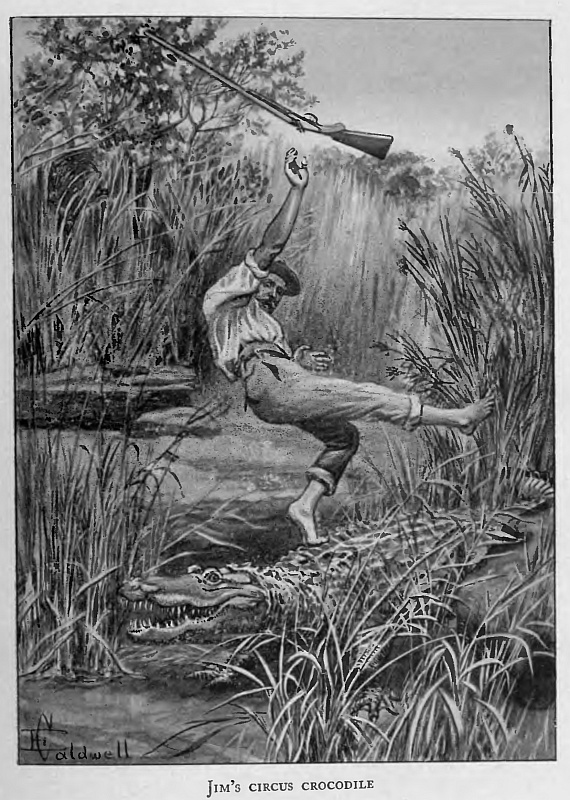 Once Jock had taken the field it was not long before the narrator found himself helped or driven over the pauses by quick suggestions from the Gallery; but there were days of fag and worry when thoughts lagged or strayed, and when slips were made, and then a vigilant and pitiless memory swooped like the striking falcon on its prey. There came a night when the story was of the Old Crocodile, and one in the Gallery—one of more exuberant fancy—seeing the gate open ran into the flower-strewn field of romance and by suggestive questions and eager promptings helped to gather a little posy: “And he caught the Crocodile by the tail, didn’t he?” “And he hung on and fought him, didn’t he?” “And the Old Crocodile flung him high into the air? High!” and, turning to the two juniors, added “quite as high as the house?” And the narrator—accessory by reason of a mechanical nod and an absent-minded “Yes” passed on, thinking it could all be put right next time. But there is no escape from the ‘tangled web’ when the Little People sit in judgment. It was months later when retribution came. The critical point of the story was safely passed when—Oh; the irony and poetic justice of it—it was the innocent tempter himself who laid his hand in solemn protest on the narrator’s shoulder and, looking him reproachfully in the eyes, said “Dad! You have left out the best part of all. Don’t you remember how...”