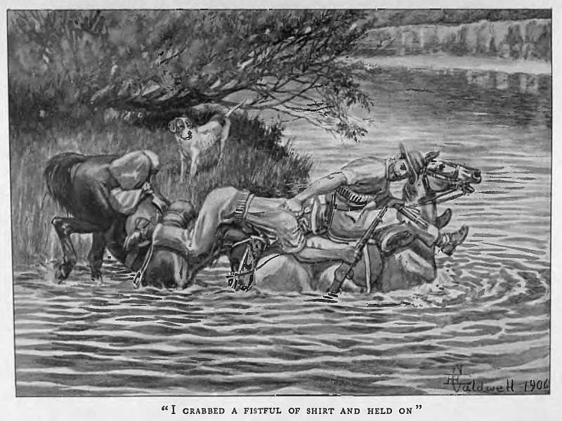 At sunset, passing down the long rough gorge, he came upon one battling with the flood to save his all—the white man struggling with the frightened beasts; the kaffir swept from off his feet; the mad bewildered oxen yielding to the stream and heading downwards towards the falls—and in their utmost need the Boy swam in and helped!