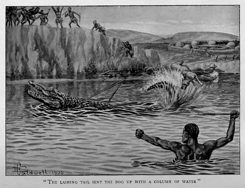There was the dog that jumped in when his master slipped from the rock, and, swimming beside him, was snapped down in his stead! And there was the boy who tried a rescue in the dark—when a rustle, yelp and growl told that the lions had his dog—and was never seen again.