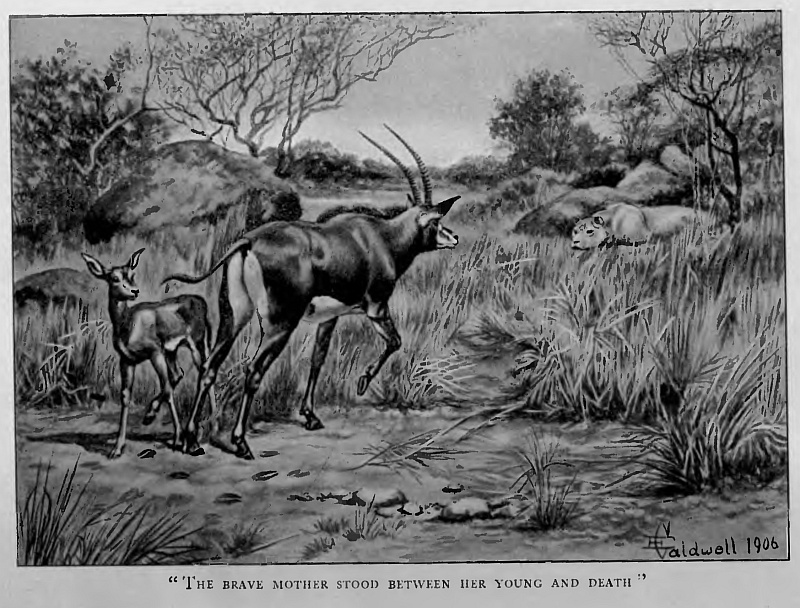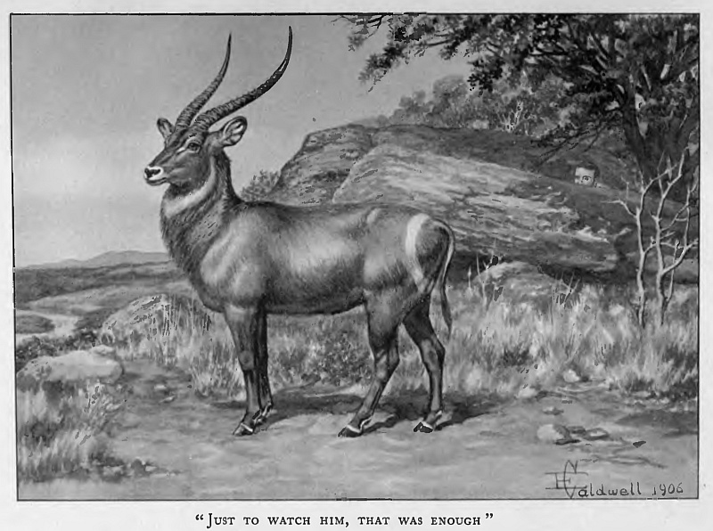 Trophies, carried back with pride or by force of habit, lay scattered about, neglected and forgotten, round the outspans, the tents of lone prospectors, the cabins of the diggers, and the grass wayside shanties of the traders. How many a ‘record’ head must have gone then, when none had thought of time or means to save them! Horns and skins lay in jumbled heaps in the yards or sheds of the big trading stores. The splendid horns of the Koodoo and Sable, and a score of others only less beautiful, could be seen nailed up in crude adornment of the roughest walls; nailed up, and then unnoticed and forgotten! And yet not quite! For although to the older hands they were of no further interest, to the new-comer they spoke of something yet to see, and something to be done; and the sight set him dreaming of the time when he too would go a-hunting and bring his trophies home.