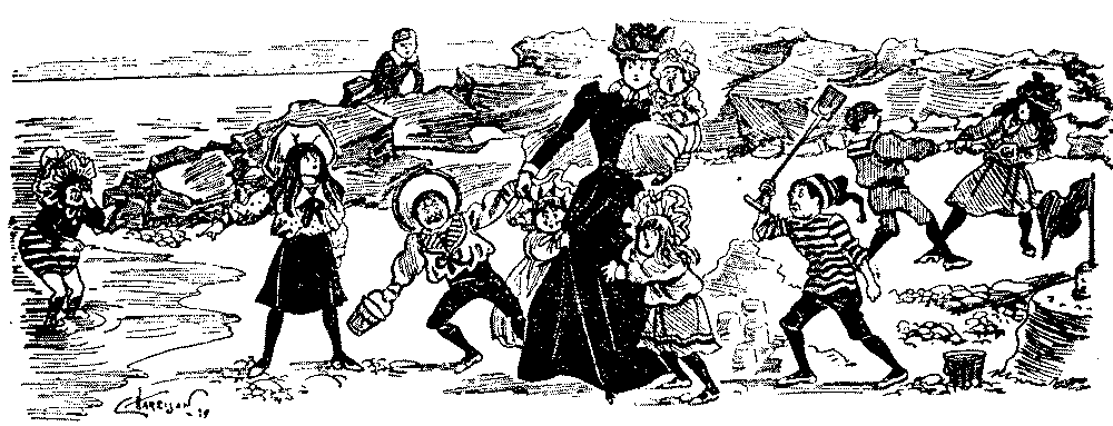 Whether or not our French critics are justified in saying that we Britishers take our pleasures sadly, these pages from the seaside chronicles of Mr. Punch will bear witness, and while at times they may seem to support the case of our critics, at others the evidence is eloquent against them. This at least is certain, that whatever the temperament of the British as displayed during the holiday season at our popular resorts, the point of view of our national jester, Mr. Punch, is unfailingly humorous, and such sadness as some of our countrymen may bring to their pleasures is but food for the mirth of merry Mr. Punch, who, we[Pg 6] are persuaded, stands for the sum total of John Bull's good humour in his outlook on the life of his countrymen.