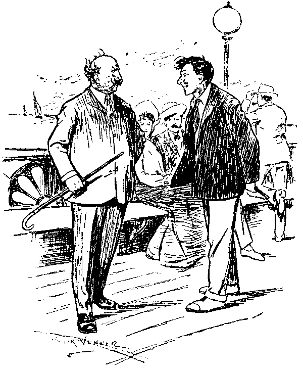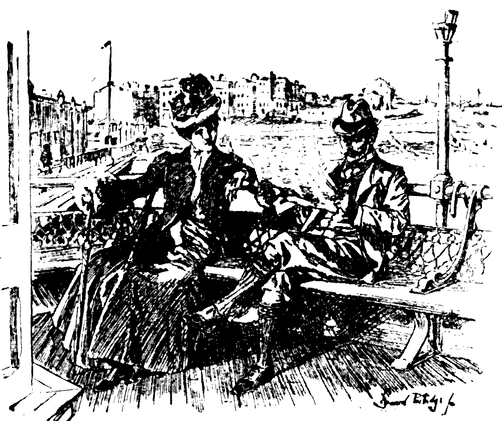 A boatman approaches. I wonder (to the boatman) if it will be a fine day tomorrow? He wonders too? We both wonder together?