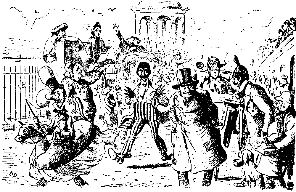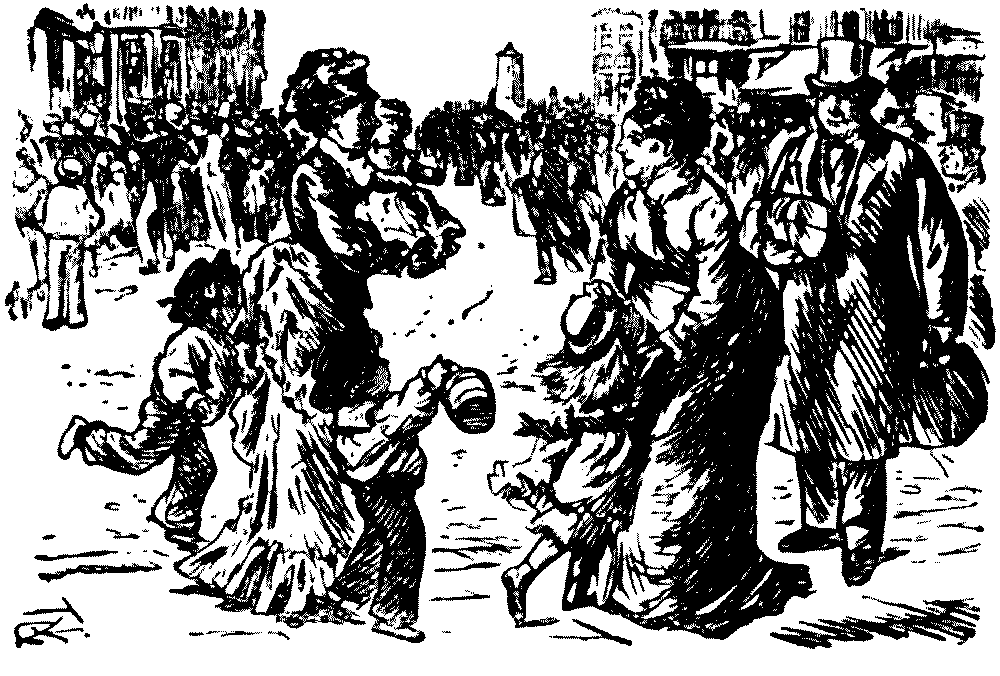 As the real abstract and brief chronicler of our time, Mr. Punch has mirrored in little the social history of the last sixty-five years, and apart from the genuine entertainment which this book presents, it is scarcely less instructive as a pictorial history of British manners during this period. One may here follow in the vivid sketches of the master-draughtsmen of the age the ceaseless and bewildering changes of fashion—the passing of the crinoline, the coming and going of the bustle, the chignon, and similar vanities, and the evolution of the present-day styles of dress both of men and women.