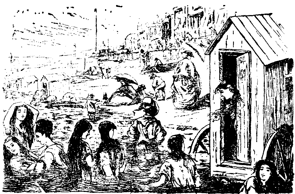 It is also curious to notice how little seaside customs, amusements, troubles and delights, have varied in the last half-century. Landladies are at the end what they were at the beginning; the same old type of bathing-machine is still in use; our forefathers and their womenfolk in the days when Mr. Punch was young behaved themselves by "the silver sea" just as their children's children do to-day. Nothing has changed, except that the most select of seaside places is no longer so select as it was in the pre-railway days, and that the wealthier classes, preferring the attractions of Continental resorts, are less in evidence at our own watering-places.