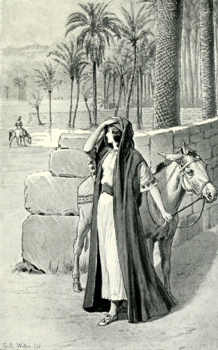 Contrasted with the arid waste that stretched around them to the sky, it seemed, indeed, a fair and peaceful retreat. Like the mirage of the desert, it was adorned by a knot of waving palms, a glittering lake, a breadth of verdant pasture, a thicket of tufted grass, bending reeds, and aromatic shrubs. Like the mirage too, it was difficult to find, but unlike the mirage, it was dotted with a goats' hair tent, at the door of which, smiling and unveiled, she sat for whose sake Sarchedon had abandoned friends, fame, ambition, country: his treasure, his pearl of price, the fairest woman in all the earth—but one.