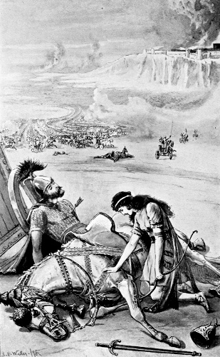 "I shall be back at sunset," said he, putting the finishing touch to his wooden weapon, and loosing the tether of his horse ere he sprang to the saddle, "then shall Ishtar have at her tent-door such a tuft of plumes as were never seen even before the pavilion of the Great King."