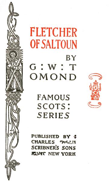 The Project Gutenberg EBook of Fletcher of Saltoun, by G. W. T. Omond This eBook is for the use of anyone anywhere at no cost and with almost no restrictions whatsoever. You may copy it, give it away or re-use it under the terms of the Project Gutenberg License included with this eBook or online at www.gutenberg.org Title: Fletcher of Saltoun Author: G. W. T. Omond Release Date: May 7, 2013 [EBook #42658] Language: English Character set encoding: UTF-8 *** START OF THIS PROJECT GUTENBERG EBOOK FLETCHER OF SALTOUN *** Produced by sp1nd, Matthew Wheaton and the Online Distributed Proofreading Team at http://www.pgdp.net (This file was produced from images generously made available by The Internet Archive)
