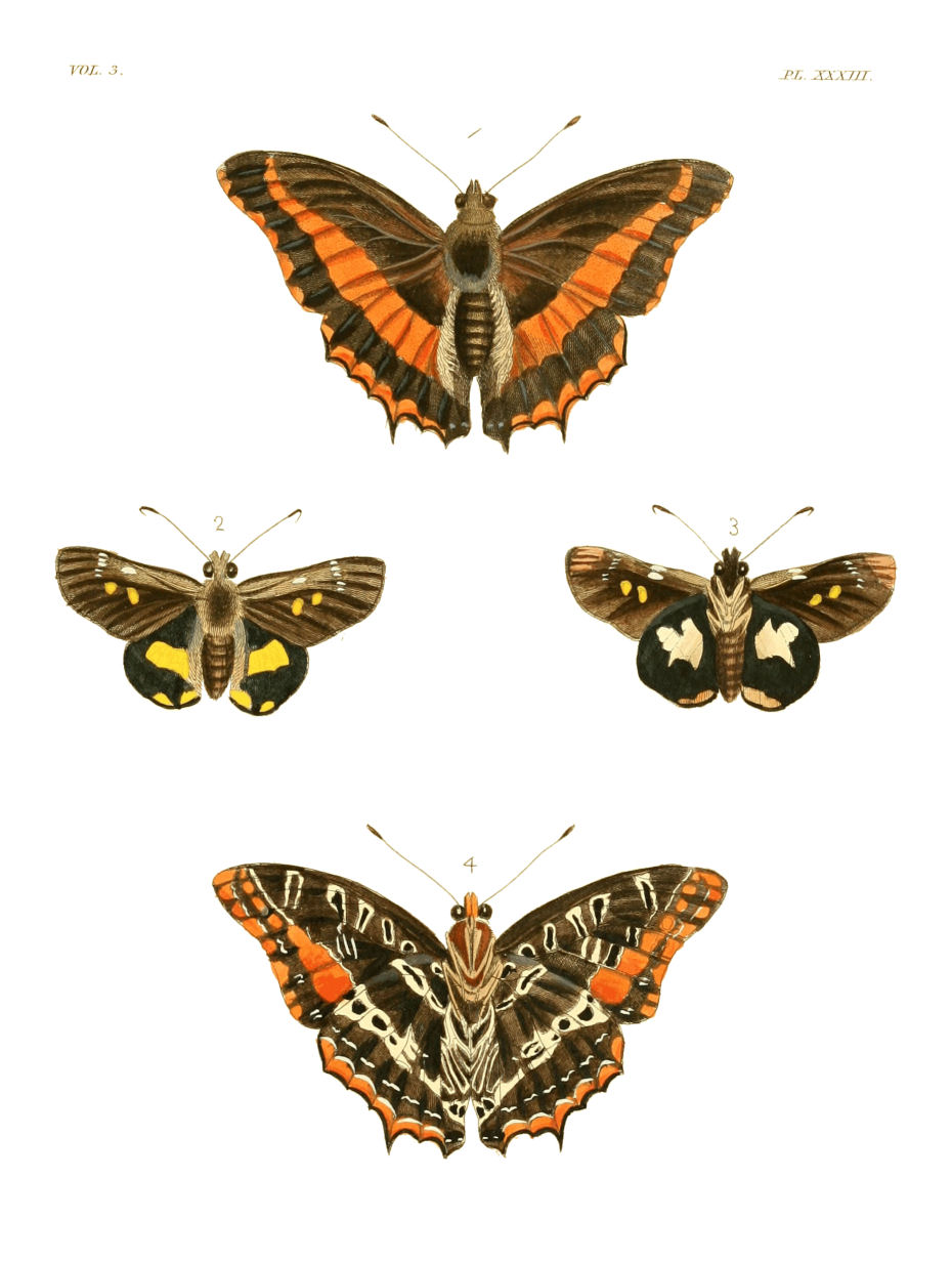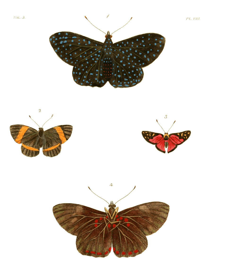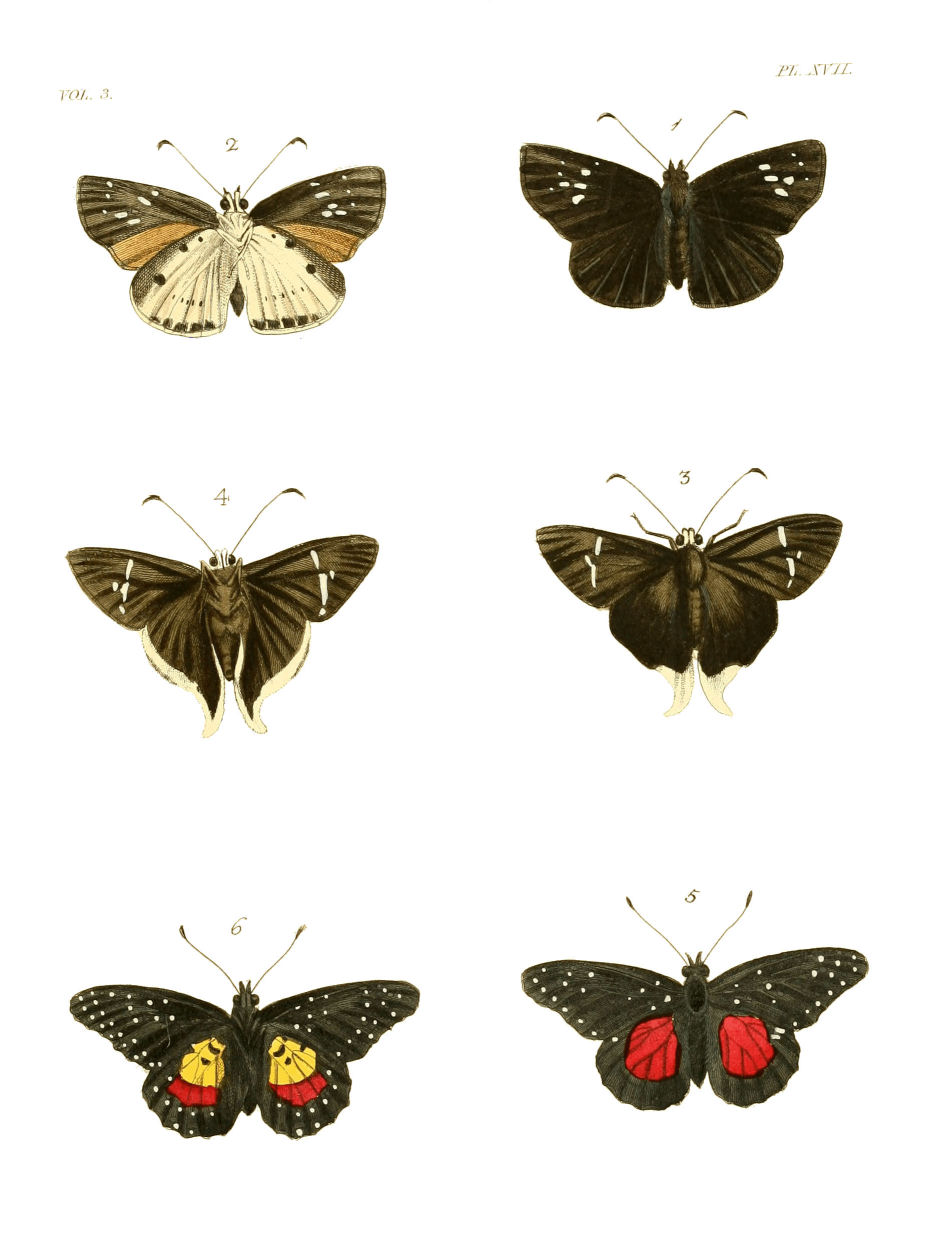 But who can foresee disappointments, or avoid their effects? It may be urged, that these plates might have been omitted, and others substituted. In so doing, however, I could {iv}not have been justified, either to the purchasers of the former volumes, or to myself. Many of them, there is no doubt, would not have the figures of those insects alluded to, unless in this work; and, as to my part, without considering the loss, neither my business, my health, nor my leisure, would have enabled me to supply their place. This very circumstance I have mentioned in the Preface to my last volume, wherein I bespoke the candour of my readers for an anticipation of a similar kind, which got abroad before I could bring out that volume. In the present case, I have the greatest reason to request the same indulgence from a motive still stronger, which is, that almost all the figures given by other authors, and which I have quoted in the index, were taken from specimens originally in my possession. As it is, I hope, the novelty, the beauty, and the curiosity of the other insects herein published, will, by affording large gratification to the inquisitive naturalist, make some amends, and that the nature of my situation will procure me a full acquittal from any kind of premeditated imposition.