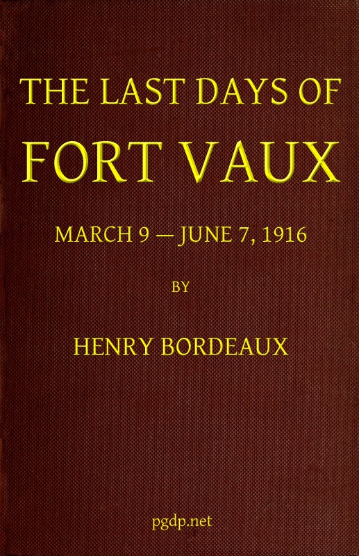M. Henry Bordeaux, the novelist of Les Roquevillard and Les Yeux qui s’ouvrent, was peculiarly entitled to write The Last Days of Fort Vaux. He followed the Battle of Verdun as a captain on the Staff, and was mentioned in dispatches in the following terms: “An officer who under all circumstances has displayed the highest military qualities. He volunteered on March 9, 1916, to perform, in our first line, an exceptionally dangerous mission, and carried it out under a furious bombardment.”