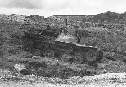 While the LVTs, the DUKWs (amphibious trucks), and the LCVPs were considerably off shore, there was virtually no enemy fire from the beach. An artillery observation plane reported no observed enemy fire. The defenders at Agat, however, 1st and 2d Battalions, 38th Infantry, would respond in their own time. The loss of so many amtracs as the assault waves neared the beaches meant that, later in the day, there would not be enough LVTs for the transfer of all supplies and men from boats to amtracs at the Agat reef. This shortage of tractors would plague the brigade until well after W-Day.