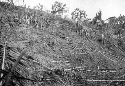During the day’s bitter fighting, Colonel Hall tried to envelop the Japanese, using Companies A and C of Aplington’s battalion and Company E of de Zayas’. On regimental orders, Aplington kicked it off at 1150. It also got nowhere at first. Company A got to the top but was thrown off. Company E was able to move ahead very slowly. Probe after probe, it found Japanese resistance perceptibly weakening. By 1900, the men of E reached the top, above Company A’s position. The Japanese had pulled back. In the morning, a further advance confirmed the enemy withdrawal.