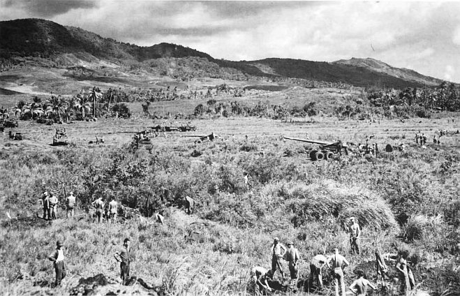In quick order, the 105mm howitzers of LtCol Alpha L. Bowser’s 3d Battalion, 12th Marines, were landed and set up in camouflaged positions to support the attack.