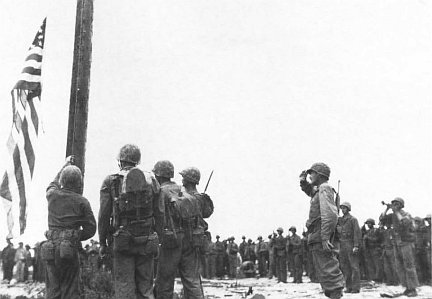 Aircraft went roaring in over mast tops and naval guns produced a continuous booming background noise. Climaxing it all was the voice of Major General Roy S. Geiger, commanding general of III Amphibious Corps, rasping from a bulkhead speaker: