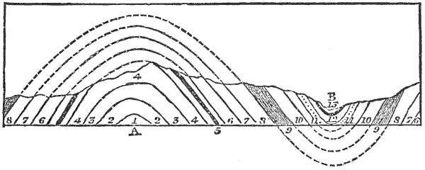 Organic matter is another important geological agent; but all are familiar with the generalization that connects the energy exhibited by every form of life with the sun; and, besides, it is scarcely necessary to allude to the obvious fact that all animals and plants, so far at least as any display of energy is concerned, are merely differentiated portions of the earth’s fluid envelope. And so, if space permitted, it might be shown that, with the exception of the tides, nearly every form of force manifested upon the earth’s surface has its origin in the sun.