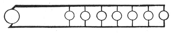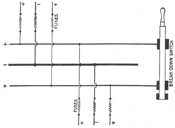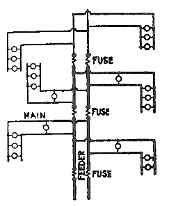 Fig. 784.—Parallel system of distribution. This is a constant voltage system and is used principally for incandescent lighting and electric motor circuits.