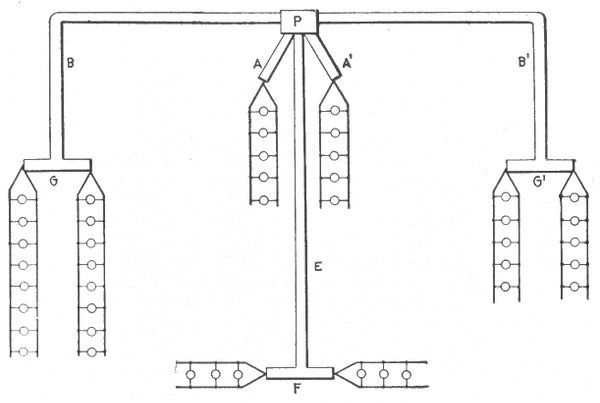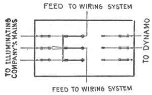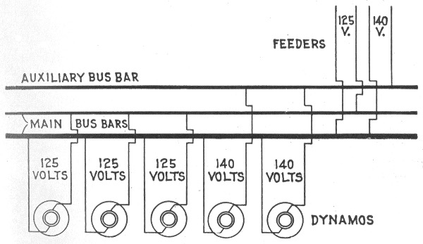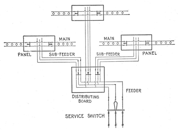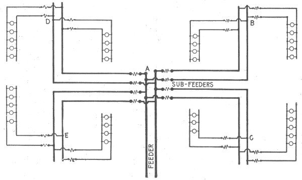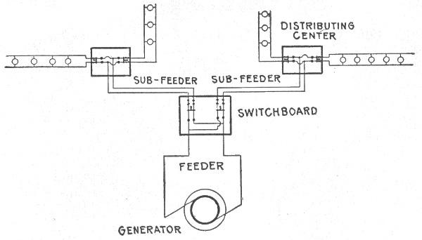 Classification—series system—danger in series arc light system—constant current system—parallel system—arrangement of feeder and mains in parallel system—series-parallel system—center of distribution—Edison three wire system—evolution of the three wire system—balanced three wire system—balancing of three wire system—copper economy in three wire systems—Dobrowolsky three wire system—modifications of three wire system—three wire storage battery system—three wire double dynamo system—three wire bridge system—three wire three brush dynamo system—Dobrowolsky three wire system—three wire auxiliary dynamo system—three wire compensator system—extension of the three wire principle—five wire system—dynamotor—connections of balancing set—balancing coils—distribution by dynamo motor sets—boosters and their usesauxiliary bus bar.