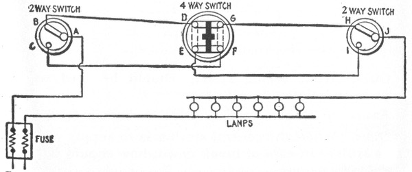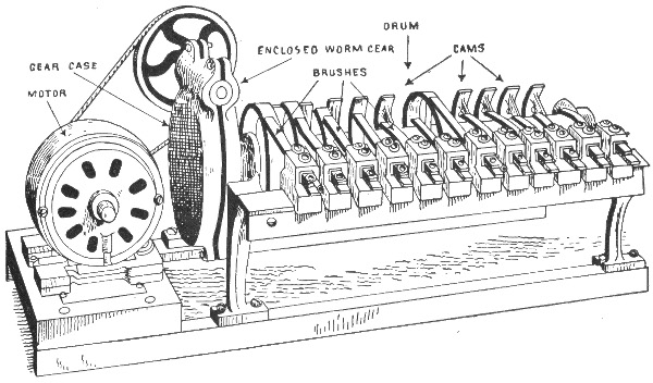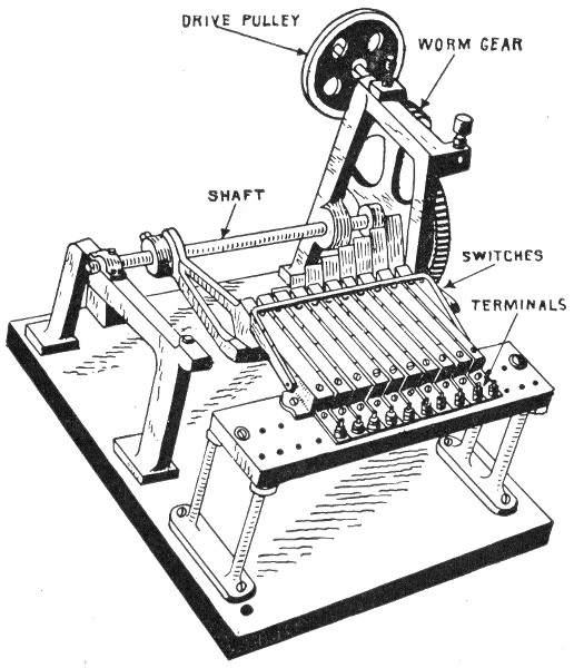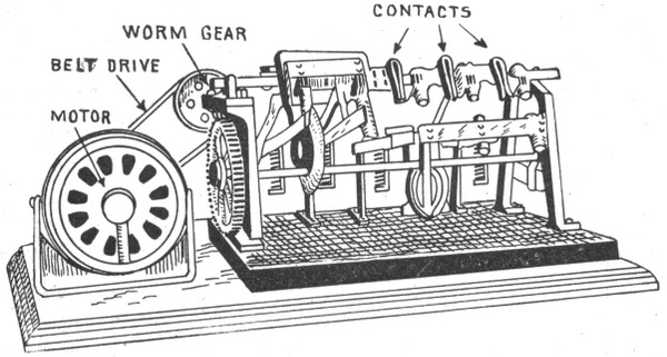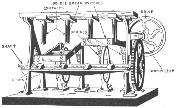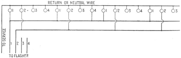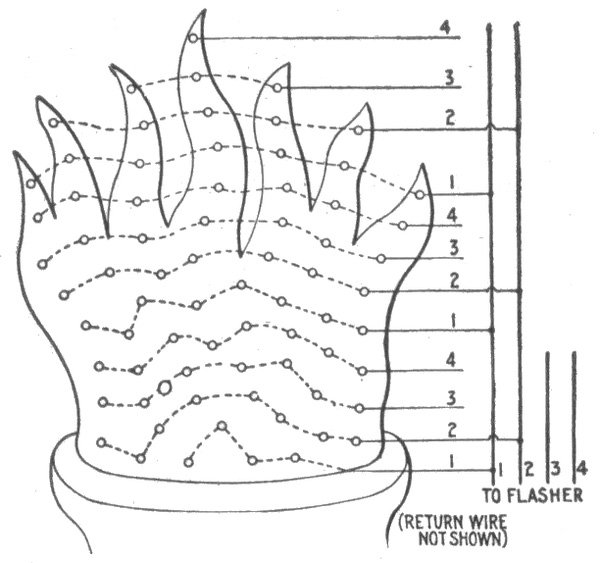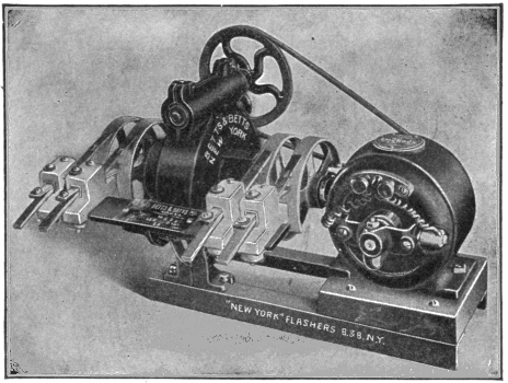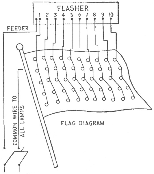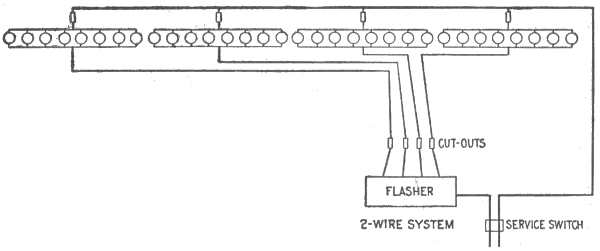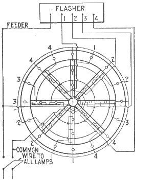 Classification—Carbon flashers—wiring diagram for Dull's carbon flashers—brush flashers—knife flashers—flasher transmission gearing—simple on and off flashers—flash system of gas lighting—high speed flashers—lighting flashers—wiring diagram for flags—diagram showing method of wiring for high speed effects on single lines—method of wiring for a torch—wiring diagram for high speeds—Dull's lightning—script breakers—chaser flashers—thermo flashers—carriage calls—monogram for carriage calls—wiring diagrams for sign illumination—-National carriage call operating keyboard—clock monogram—Bett's clock mechanism for operating electric monogram time flasher—talking signs—two way thermal flasher.