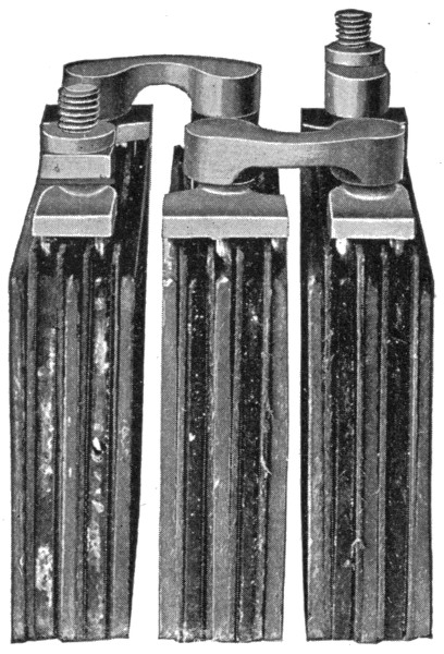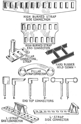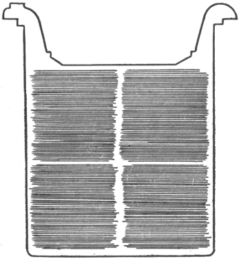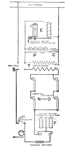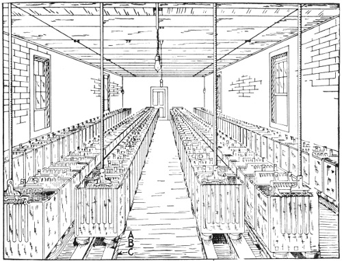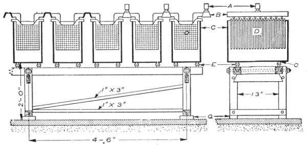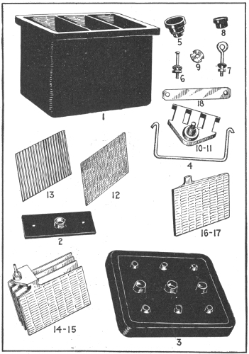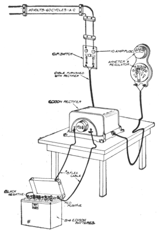 Early experiments—theory—description of storage cell—electrolyte—effect of current passing through electrolyte—types of storage batteries—Plant cells—Willard plates; wood separator—parts of "Autex" automobile cells—Faure or pasted type—comparison of Plant and Faure plates—the electrolyte; kind generally used; preparation; test; mixing acid and water; kind of vessel used;—specific gravity table—effect of deep vessel—density of electrolyte—hydrometer syringe—impurities in electrolyte—tests for impurities; chlorine, nitrates, acetic acid, iron, copper, mercury, platinum—old electrolyte—voltage of a secondary cell—charging—connections for charging—charging; first time; period; regulation of voltage—Edison cell data—frequency of charging—cadmium test—emergency connections for weak ignition battery—portable testing instruments—charge indications—two methods of charging from a direct current lighting system—colors of the plates—how best results are obtained in charging—charge voltage—two ways of charging—diagram of charging vii connections—how to keep charging current constant—tests while charging; after charging—charge indications—behavior of electrolyte during discharge—lead burning outfit—"boiling"; causes—hydrogen gas generator for lead burning—quick charging—charging through the night—charging period for new battery—Willard underhung battery box for automobiles—high charging rates—"National" instructions for taking voltage readings—mercury arc rectifier—capacity—table of capacity variation for different discharge rates—how to increase the capacity—discharging; too rapidly rating; maximum rate—Edison alternating current rectifier—attention after discharging—the battery room—battery attendants—points on care and management—placement of cells—how to avoid leakage—precautions when unpacking cells—assembling cells—connections—precaution in joining terminals—battery troubles—short circuiting; indication; location—overdischarge; buckling—sulphation of plates—data on National cells; American cells; Autex cells—action in idle cell—lack of capacity—how to prevent lead poisoning—low specific gravity without short circuits; causes—treatment of weak cells—pole testing paper—disconnecting cells—sulphuric acid specific gravity table—how to take a battery out of commission—Witham charging board—putting batteries into commission—cleaning jars—table of voltage charge as affected by discharge rate—condensed rules for the proper care of batteries.