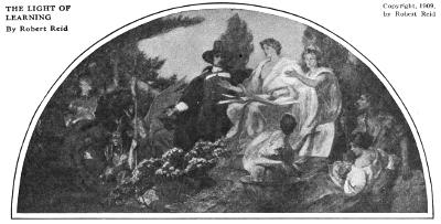 Edwin Howland Blashfield has a place in the front rank of American mural painters through his elevation of thought and his masterly execution. His imagination is fertile and his treatment of subjects highly decorative. He has been able to paint both history and legend, and has placed them side by side in the same compositions.