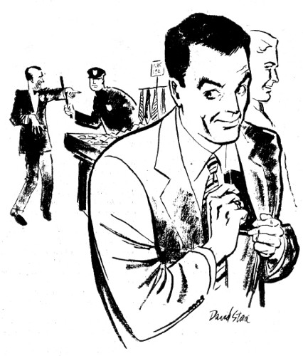 "Well, I'll tell you. When I came to see you, I was pretty sure you'd turn me down cold on importing Matter Repositors. But I had an ace up my sleeve. I hoped you would admit that the reason you've been stalling on selling Earth any Repositors is that you don't really have a practical one. I thought maybe rumors of the Repositor's powers had been vastly exaggerated. If you admitted that, I intended to publicize it to the limit. A campaign to convince Earthmen that you'd been kidding them would work, because it plays on John Q. Public's conviction that he's pretty smart, too smart to believe all this gab about a gadget he's never seen. With your denial to back me up, I could put it across. It would be a lifesaving shot in the arm for Earth business."