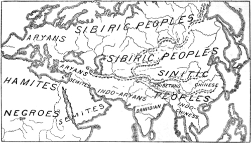II. The Aryac Stock. Synonyms. Origin of the Aryans. Supposed Asiatic origin now doubted. The Aryac physical type. The prot-Aryac language. Culture of proto-Aryans. The “proto-Aryo-Semitic” tongue. Development of inflections. Prot-Aryac migrations. Southern and northern streams. Approximate dates. Scheme of Aryac migrations. Divisions. 1. The Celtic Peoples. Members and location. Physical and mental traits. 2. The Italic Peoples. Ancient and modern members. Physical traits. The modern Romance nations. Mental traits. 3. The Illyric Peoples. Members and physical traits. 4. The Hellenic Peoples. Ancient and modern Greeks. Physical type. Influence of Greek culture. 5. The Lettic Peoples. Position and language. 6. The Teutonic Peoples. Ancient and modern members. Mental character. Recent progress. 7. The Slavonic Peoples. Ancient and modern members. Physical traits. Recent expansion. Character. Relations to Asiatic Aryans. 8. The Indo-Eranic Peoples. Arrival in Asia. Location. Members. Indian Aryans. Appearance. Mental aptitude. 11