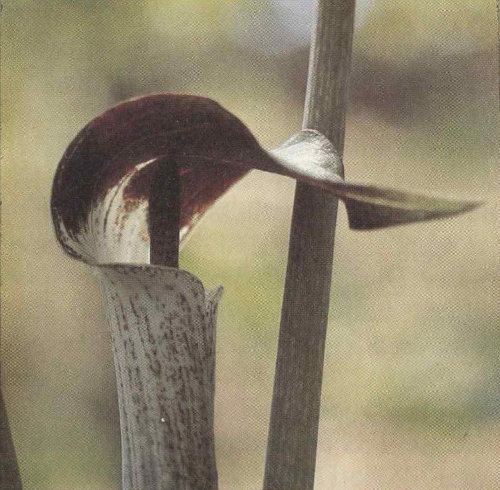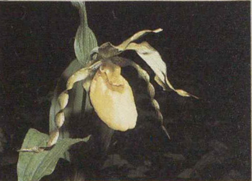 In the first low reaches of your one-day trip from Georgia to Maine here in the Smokies, crossvine, grapevine, or lady’s-slipper (photo) may be blooming. These flowers, like the Virginia, pitch, and shortleaf pines, cling to the warmest local climates. They also follow the driest slopes and ridges only part way up the mountains. As you gain elevation you quickly leave these species behind.