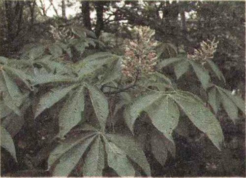 The trail now slants off onto the north side of the ridge. Right away the air is somewhat cooler here where part of the day the ridgetop shields it from the sun. The 27 pines quickly disappear, and beeches, yellow birches, maples, and buckeyes form the forest. You New Englanders should now feel quite at home, among these tree species that accompany us all the way across the mountain’s north and east flank. Then, as we approach the 1,500-meter (5,000-foot) level, the dark spires of scattered spruces begin to appear, signaling the nearness of the Smokies’ crowning forest.