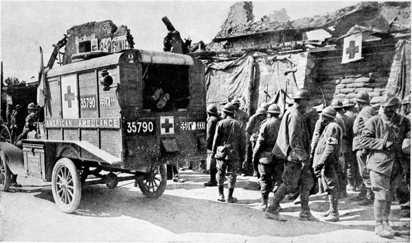 This transferring came to an end when the American Government took over the Ambulance Service. From then on, all drivers have been of necessity enlisted men. The old American Ambulance, later called the American Field Service, was a purely volunteer organization, and had no connection with any government. It was made up of American citizens who left civil life, paying their own expenses and furnishing their own equipment, and in many cases their ambulances. These men, feeling that America owed a debt to France, banded together to form the original American Ambulance Service, which they laid on the altar of their devotion to a true and great cause.