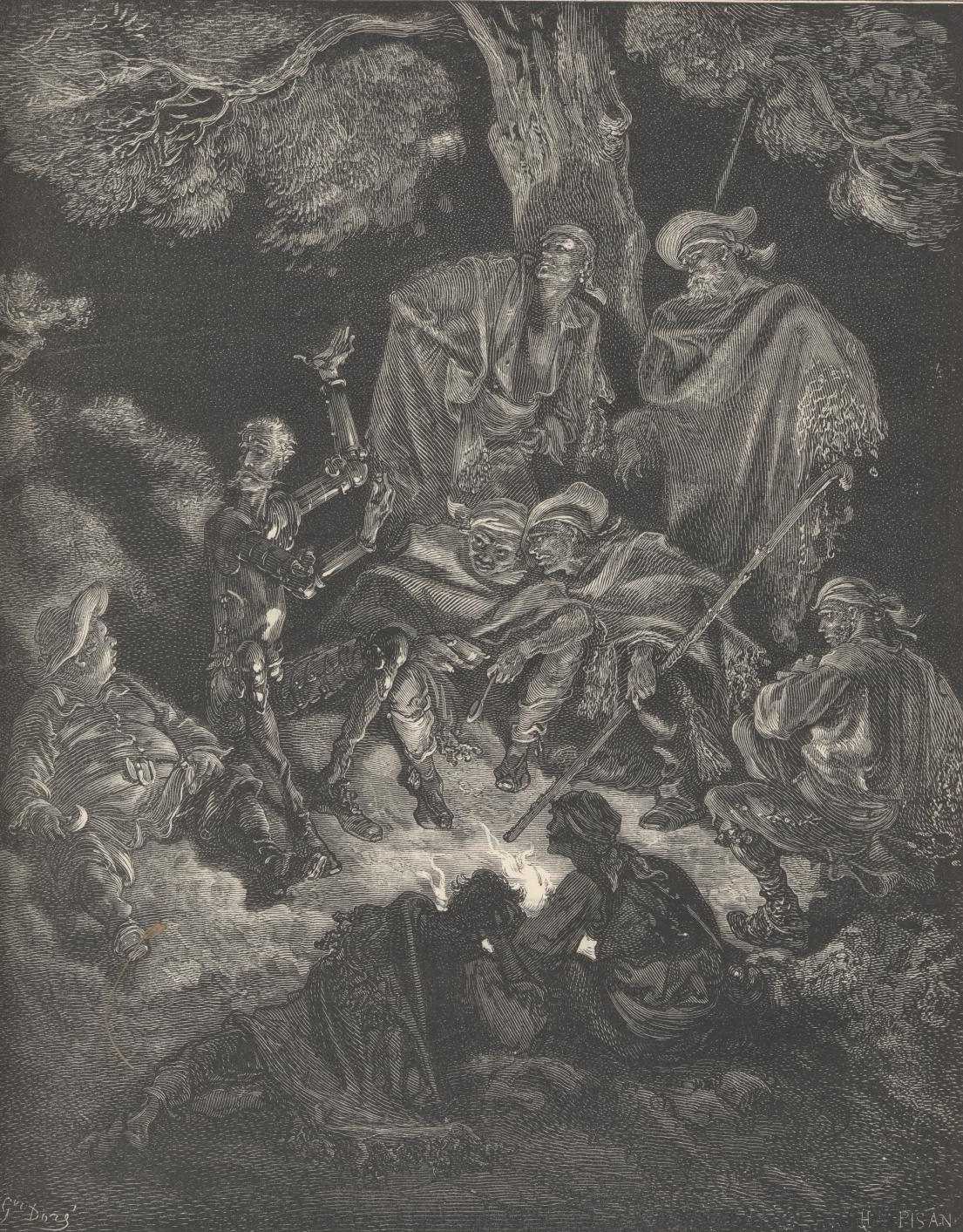 The goatherd had hardly done speaking, when the notes of the rebeck reached their ears; and shortly after, the player came up, a very good-looking young man of about two-and-twenty. His comrades asked him if he had supped, and on his replying that he had, he who had already made the offer said to him: