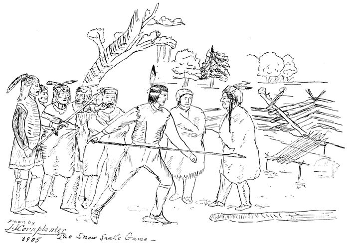 Later I was able to go over my original notes with Edward Cornplanter, the local authority on Seneca religion, rites and folk-ways, and to write out the material here presented. Cornplanter’s son Jesse assisted by way of making drawings under his father’s direction. I also had the help of Skidmore Lay, Ward B. Snow, Delos B. Kittle, Mrs. John Kittle, James Crow and others. My informants from the lower reservation, the Christian district, were Aurelia Jones Miller, Fred Kennedy, George D. Jimerson, Julia Crouse, Moses Shongo, Mrs. Moses Shongo, David George, William Parker, Job King, and Chester C. Lay; and Laura Doctor and Otto Parker of the Tonawanda Reservation.