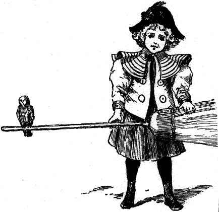 "WITH THE PARROT PERCHED ON THE BROOM SHE WAS CARRYING".